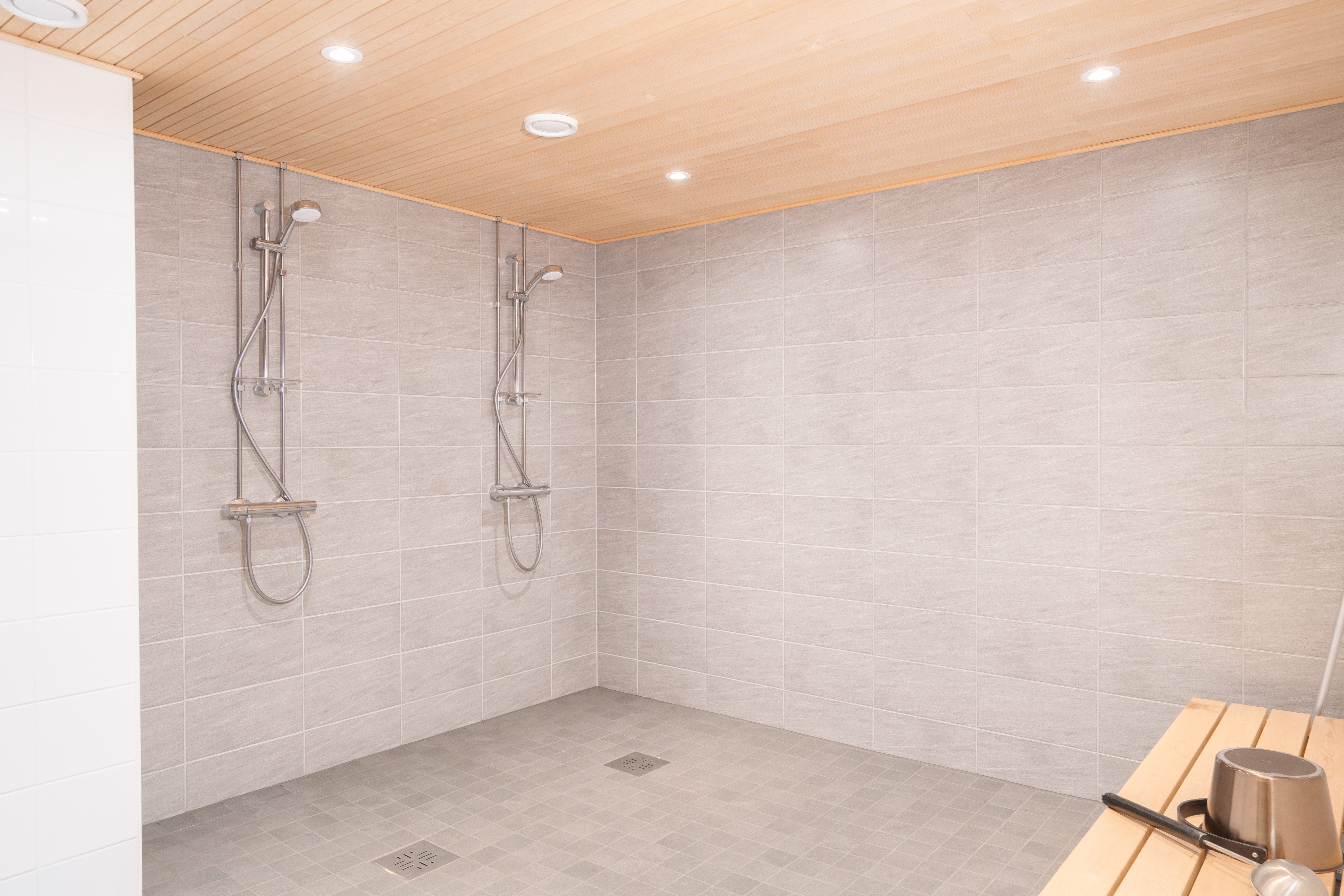| Kylpyhuoneen kuvaus | WC-istuin, suihku, suihkuseinä, pesukoneliitäntä, lattialämmitys, peilikaappi, allaskaappi, pesuallas ja pyykkikaappi, seinät (kaakeli), lattiat (laatta) |