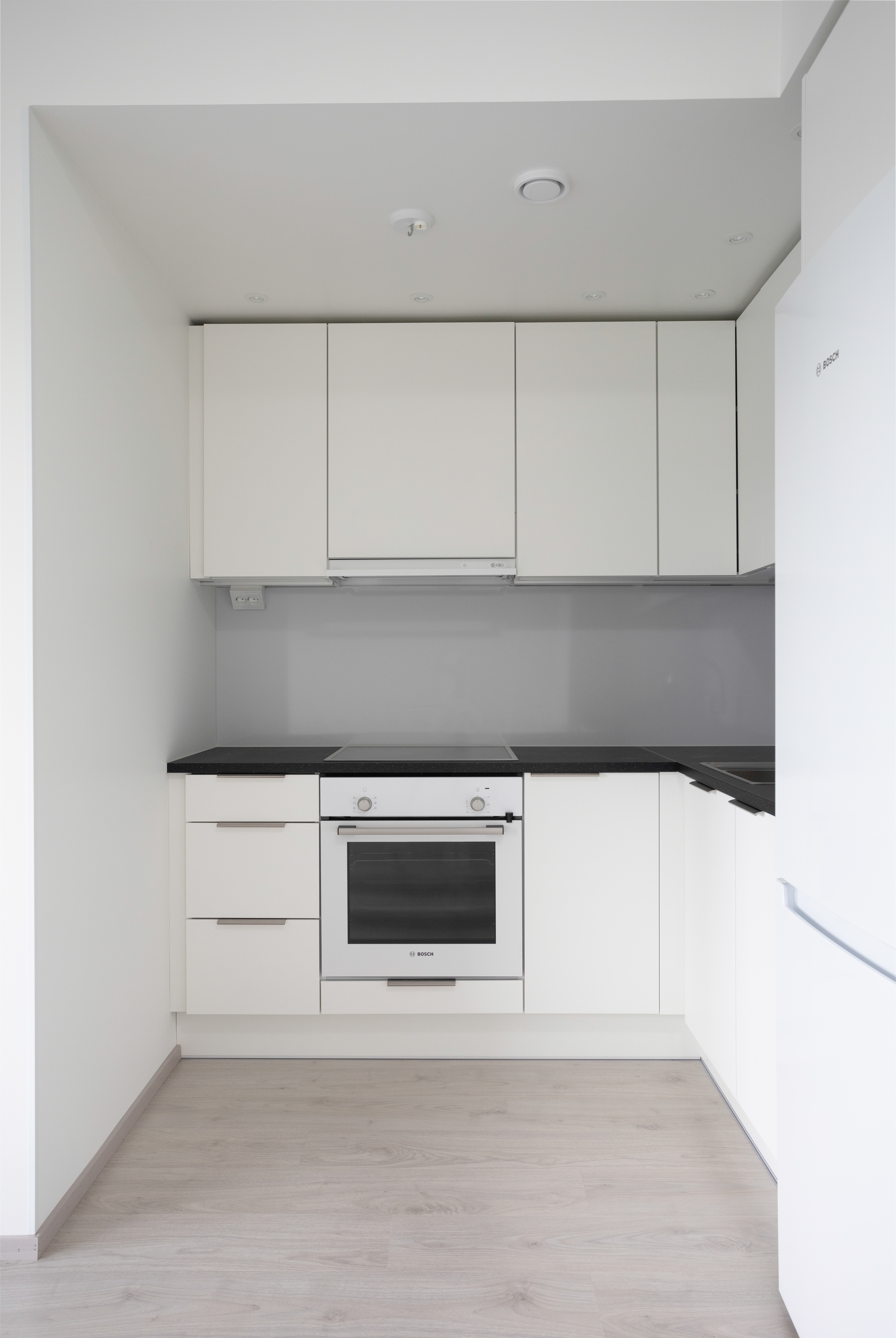| Keittiön kuvaus | Liesi (Keraaminen liesi), työtasot (laminaatti), seinät (maali), lattiat (laminaatti), mikroaaltouuni (varaus), jääkaappipakastin, erillisuuni, astianpesukone ja liesituuletin |