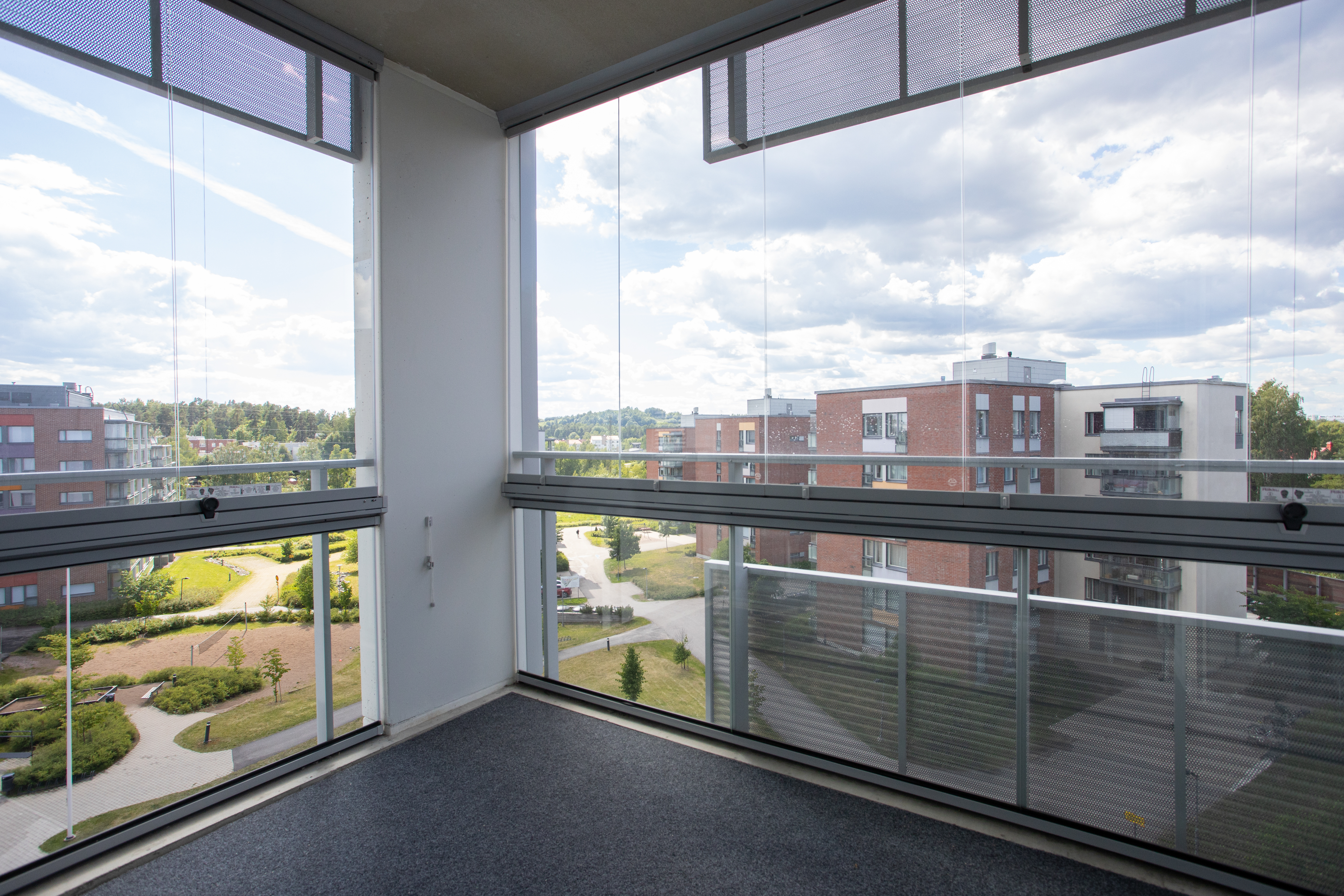 Asunnon pohjaratkaisu on toimiva ja avara. Keittiön yhteyteen mahtuu ruokailuryhmä ja valoisan olohuoneen ikkunat aukeavat kahteen suuntaan. Lasitettu länsiparveke, josta avautuvat puistomaiset näkymät, palvelee alkukeväästä pitkälle syksyyn. Tilavassa makuuhuoneessa on runsaasti kaappitilaa ja kylpyhuoneessa on pyykkikaappi ja tilaa pesutornille.