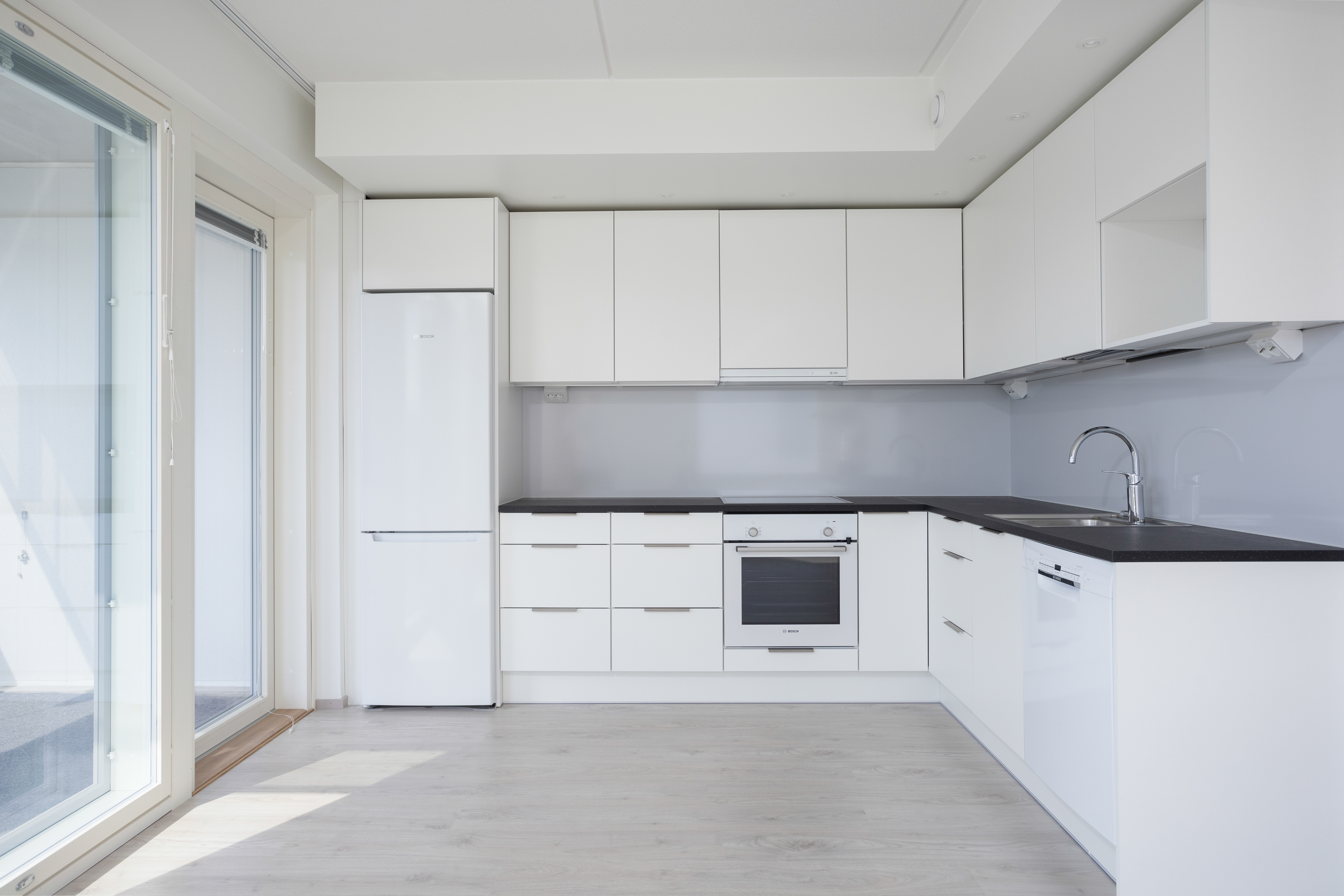 | Keittiön kuvaus | Liesi (Keraaminen liesi), työtasot (laminaatti), seinät (maali), lattiat (laminaatti), mikroaaltouuni (varaus), jääkaappipakastin, erillisuuni, astianpesukone ja liesituuletin |