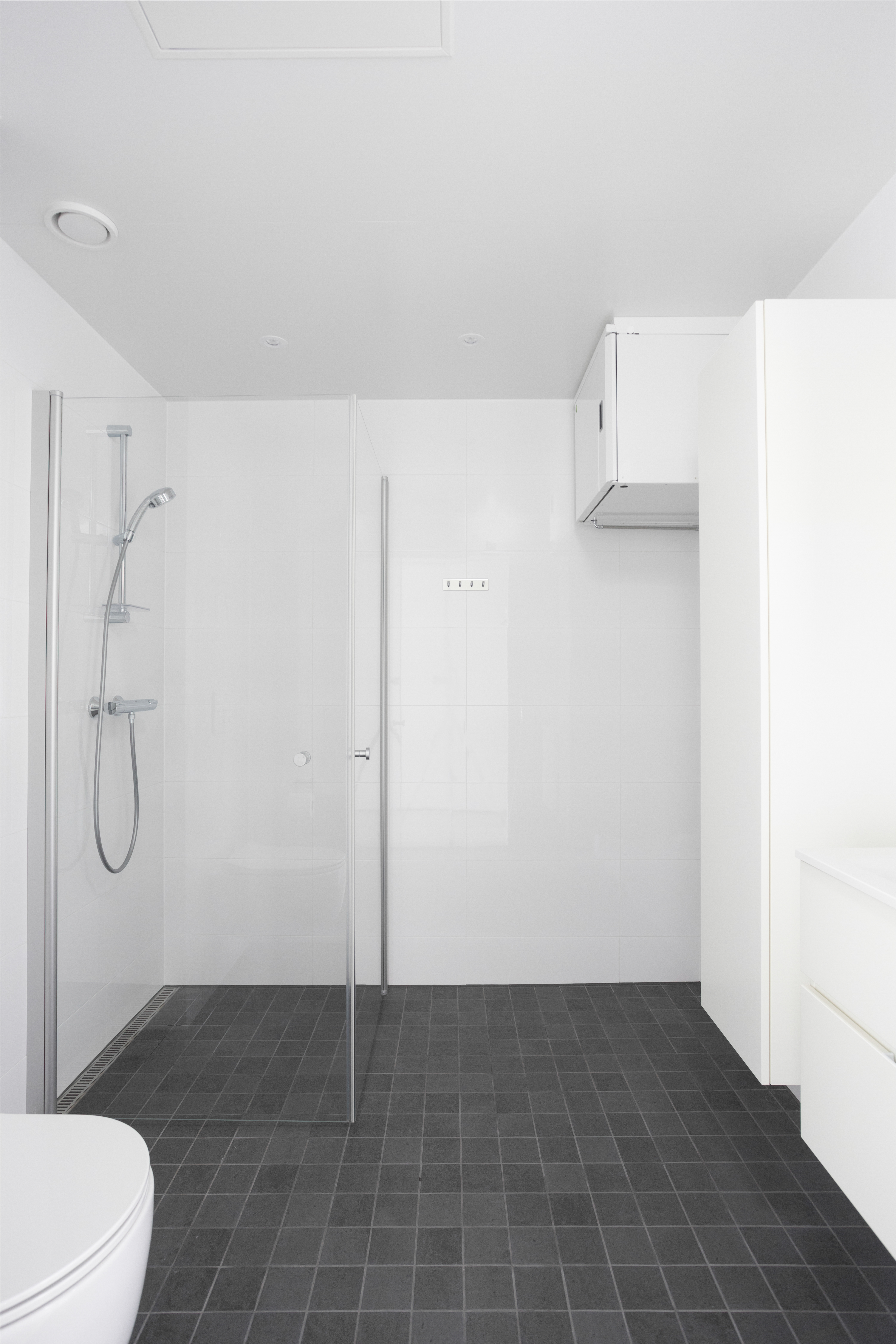 | Kylpyhuoneen kuvaus | WC-istuin, suihku, suihkuseinä, pesukoneliitäntä, lattialämmitys, peilikaappi, allaskaappi, pesuallas ja pyykkikaappi, seinät (kaakeli), lattiat (laatta) |
