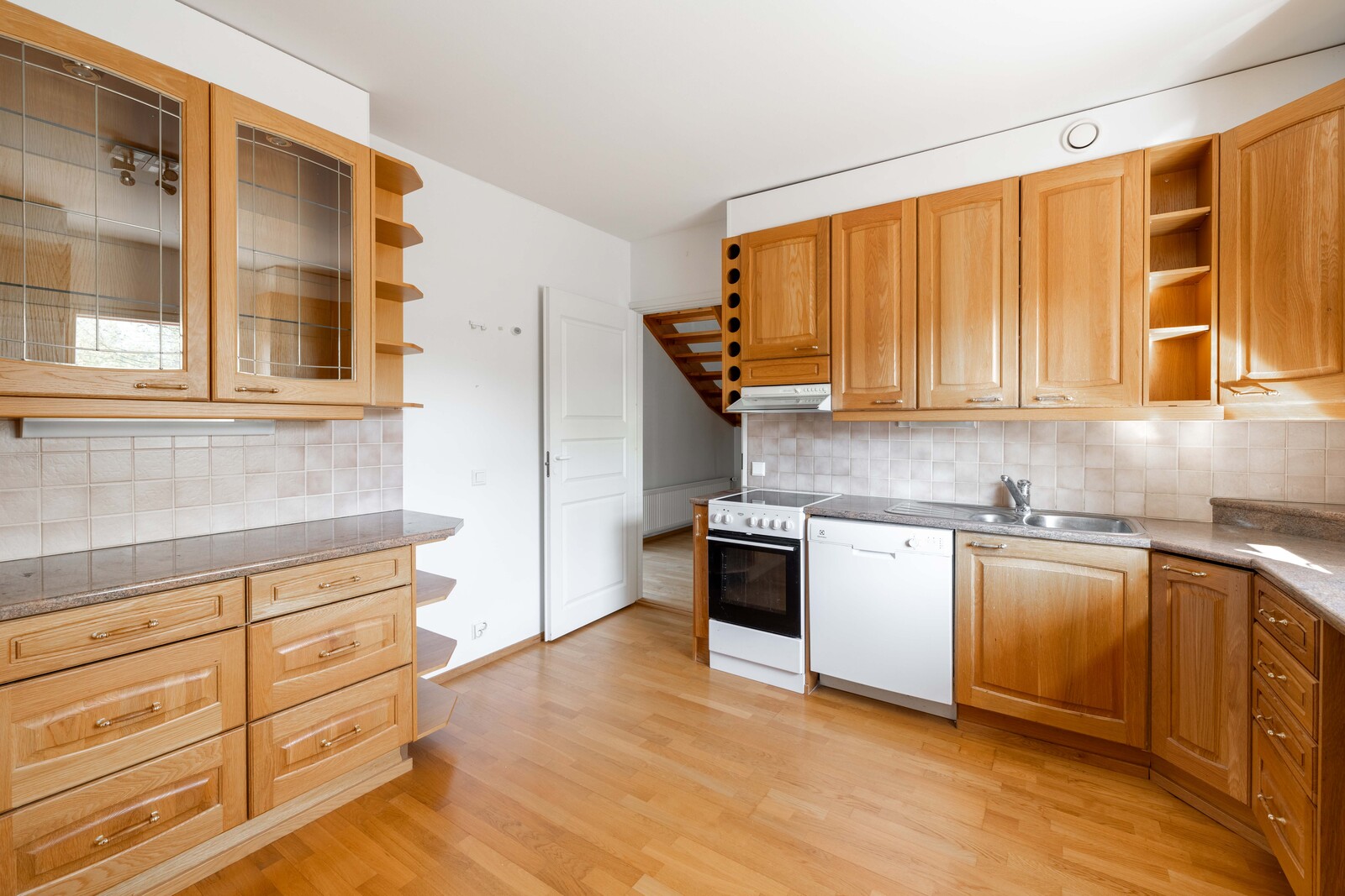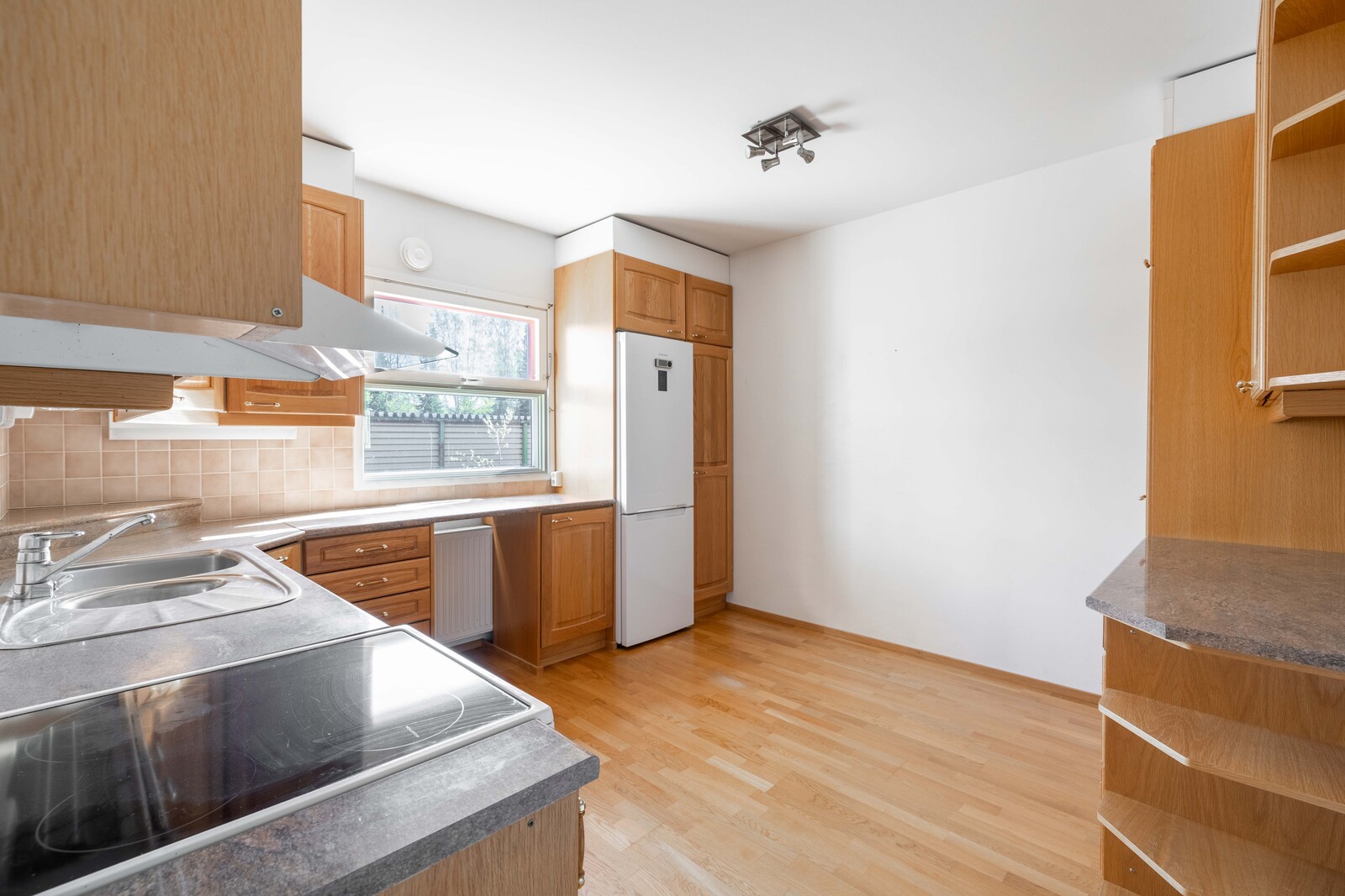 | Keittiön kuvaus | Liesi (Keraaminen liesi), työtasot (laminaatti), seinät (maali), lattiat (parketti), astianpesukone, jääkaappipakastin ja liesituuletin, myyjät eivät vastaa kodinkoneiden toimivuudesta |