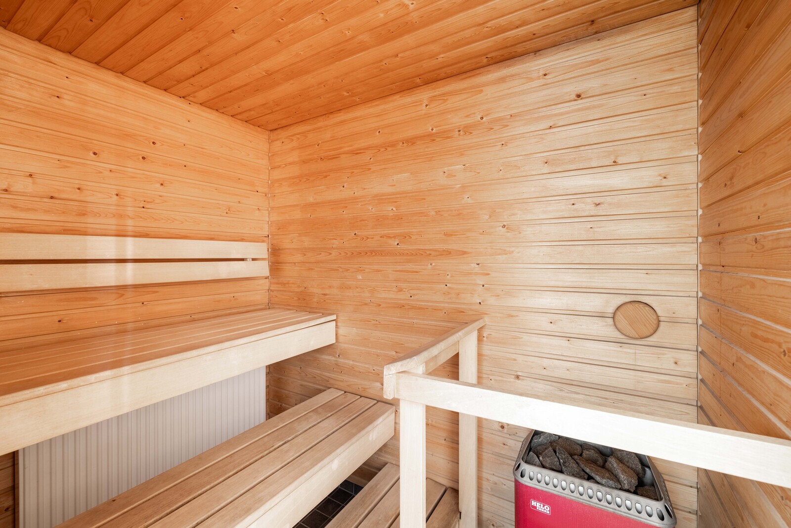 | Saunan kuvaus | Seinät (puu), lattiat (laatta), Sähkökiuas |
