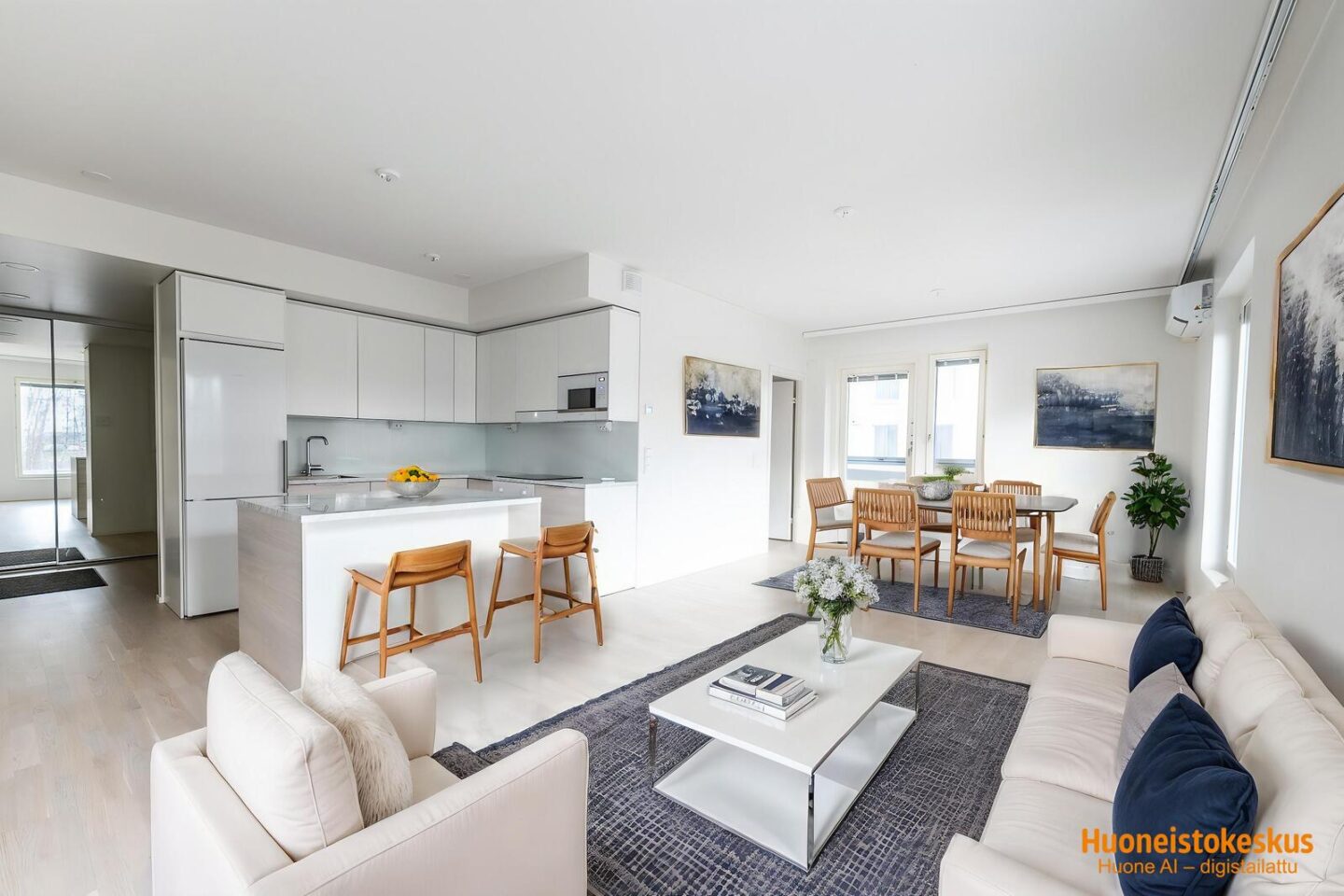 | Muuta kauppaan kuuluvaa | Lisätietoja sisältyvistä varusteista: huoneistokohtainen ilmanvaihtokone, ilmalämpöpumppu, kiinteät valaisimet, sälekaihtimet/rullaverhot |