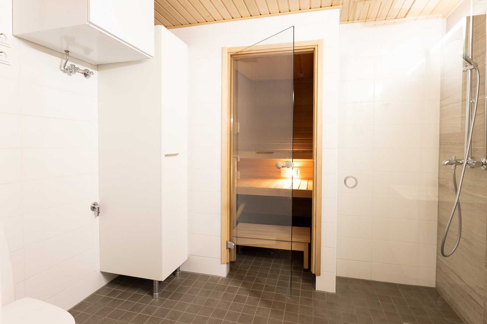 | Saunan kuvaus | Seinät (puu), lattiat (laatta), Sähkökiuas |