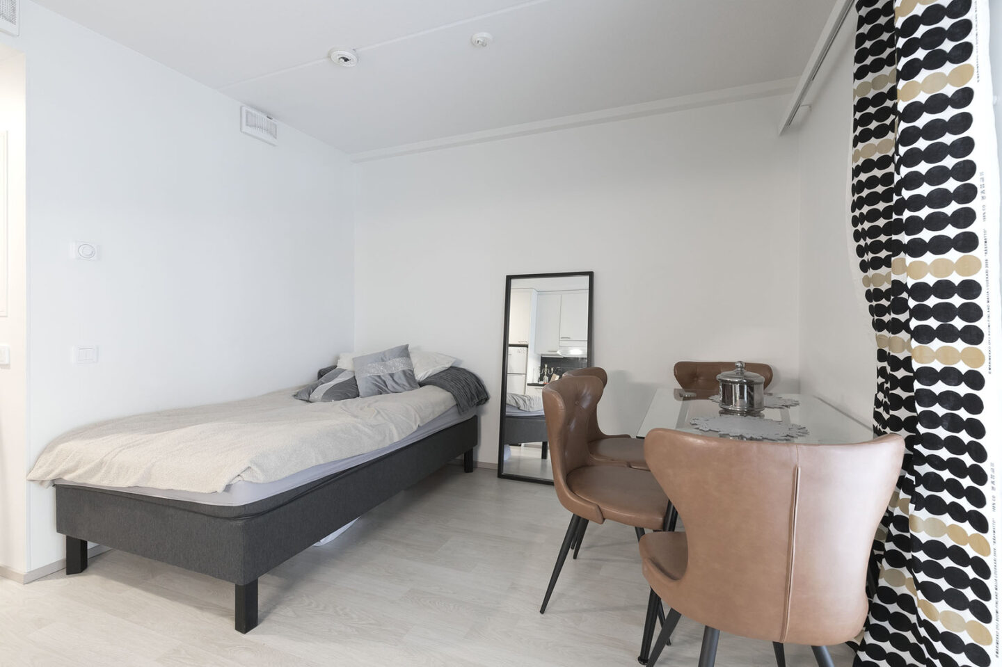 Tervetuloa tutustumaan tähän hyväkuntoiseen ja tehokkaasti suunniteltuun 21,5 m² yksiöön! Asunto sijaitsee hissillisen kerrostalon neljännessä kerroksessa ja sen ranskalainen parveke avautuu aamuauringon suuntaan, tuoden valoa ja avaruutta huoneistoon. Vuonna 2020 valmistuneessa taloyhtiössä ei ole tiedossa suurempia remontteja ja tämän asunnon osalta tonttiosuus on jo lunastettu – ei siis tontin vuokravastiketta maksettavana! Sijainti on erinomainen: lähin kauppa on vain noin 600 metrin päässä ja Jyväskylän ydinkeskustan palvelut ovat noin kilometrin etäisyydellä. Jyväskylän yliopistoon on matkaa vain noin 450 metriä ja ammattikorkeakouluun noin 2,1 kilometriä, mikä tekee asunnosta erinomaisen vaihtoehdon niin opiskelijalle kuin sijoittajalle. Huoneisto on jo valmiiksi vuokrattu ja vuokratuotto on noin 4 %. Kiinnostuitko? Ota yhteyttä ja tule tutustumaan!