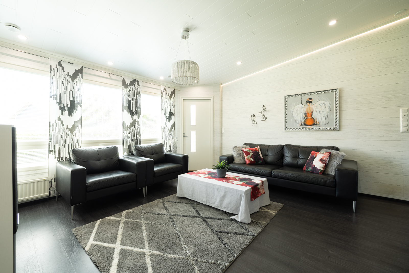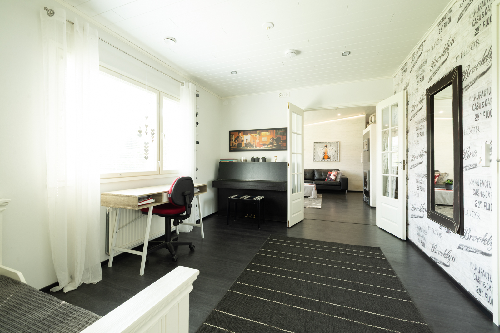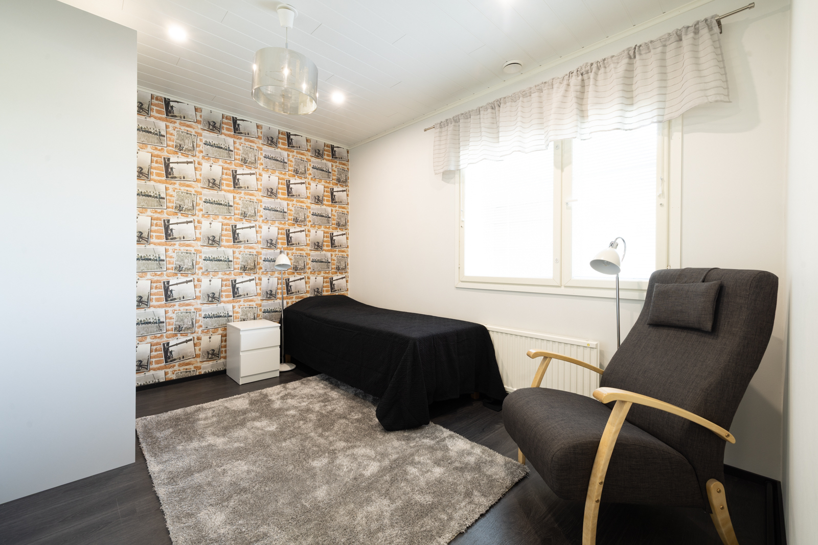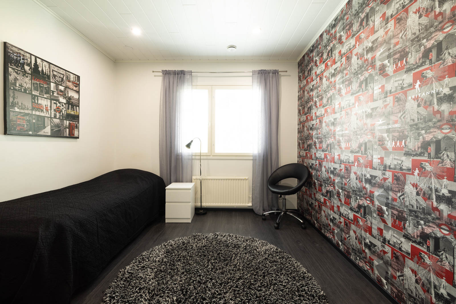 | Olohuoneen kuvaus | Seinät (tapetti), lattiat (vinyyli) |