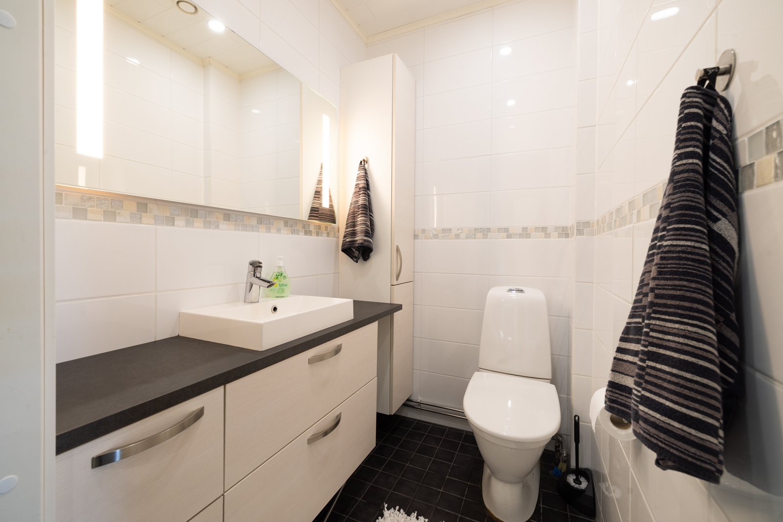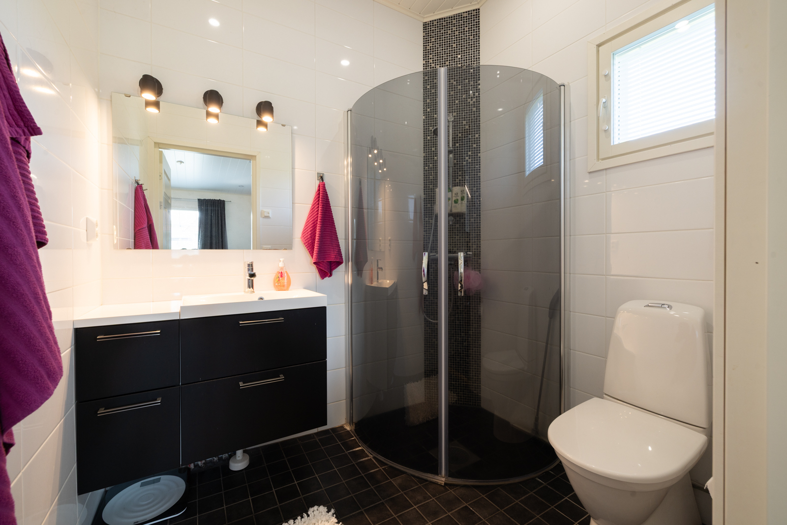 | Kylpyhuoneen kuvaus | Lattialämmitys, suihku ja wc-istuin, seinät (kaakeli), lattiat (laatta), Katot paneeli, mdf Pesuhuoneita 3 kpl, joissa kaikissa myös wc istuin. |