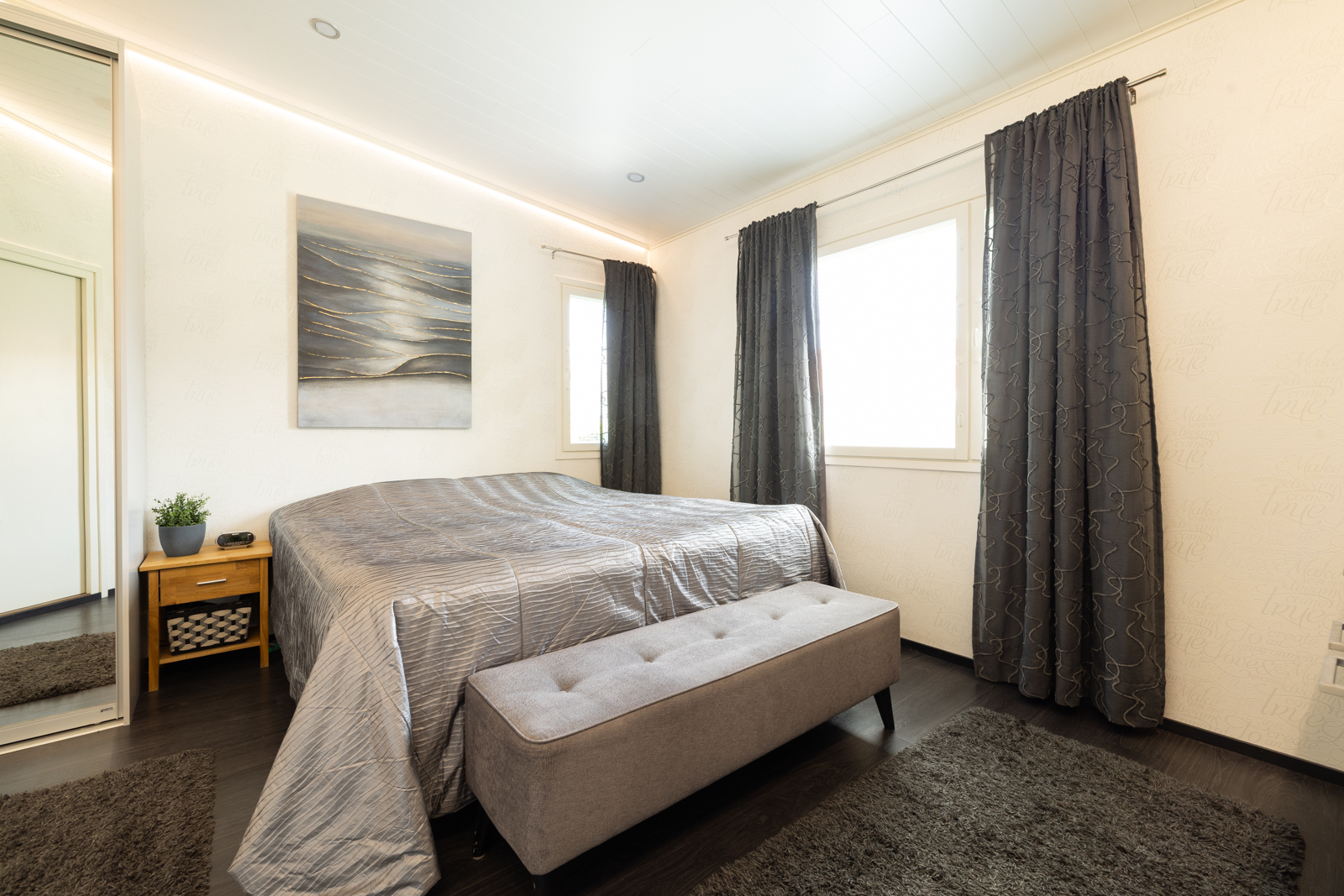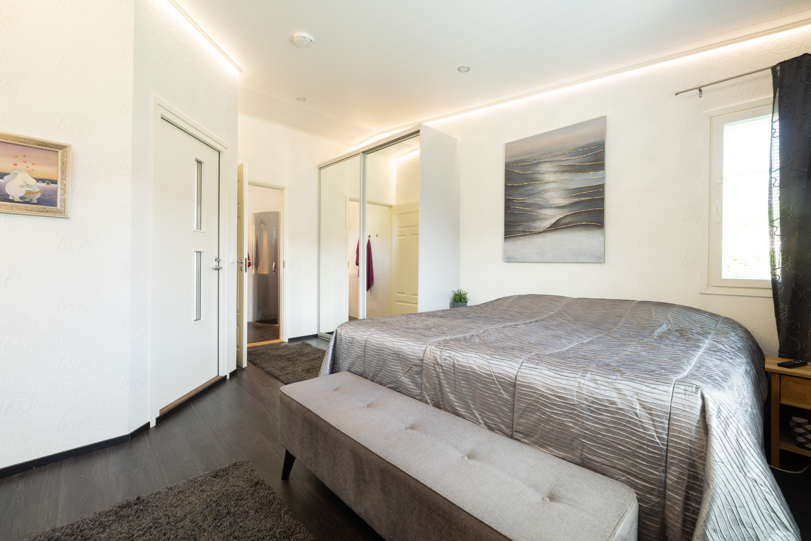 | Makuuhuoneen kuvaus | Lukumäärä: 6, seinät (tapetti ja maali), lattiat (vinyyli) |