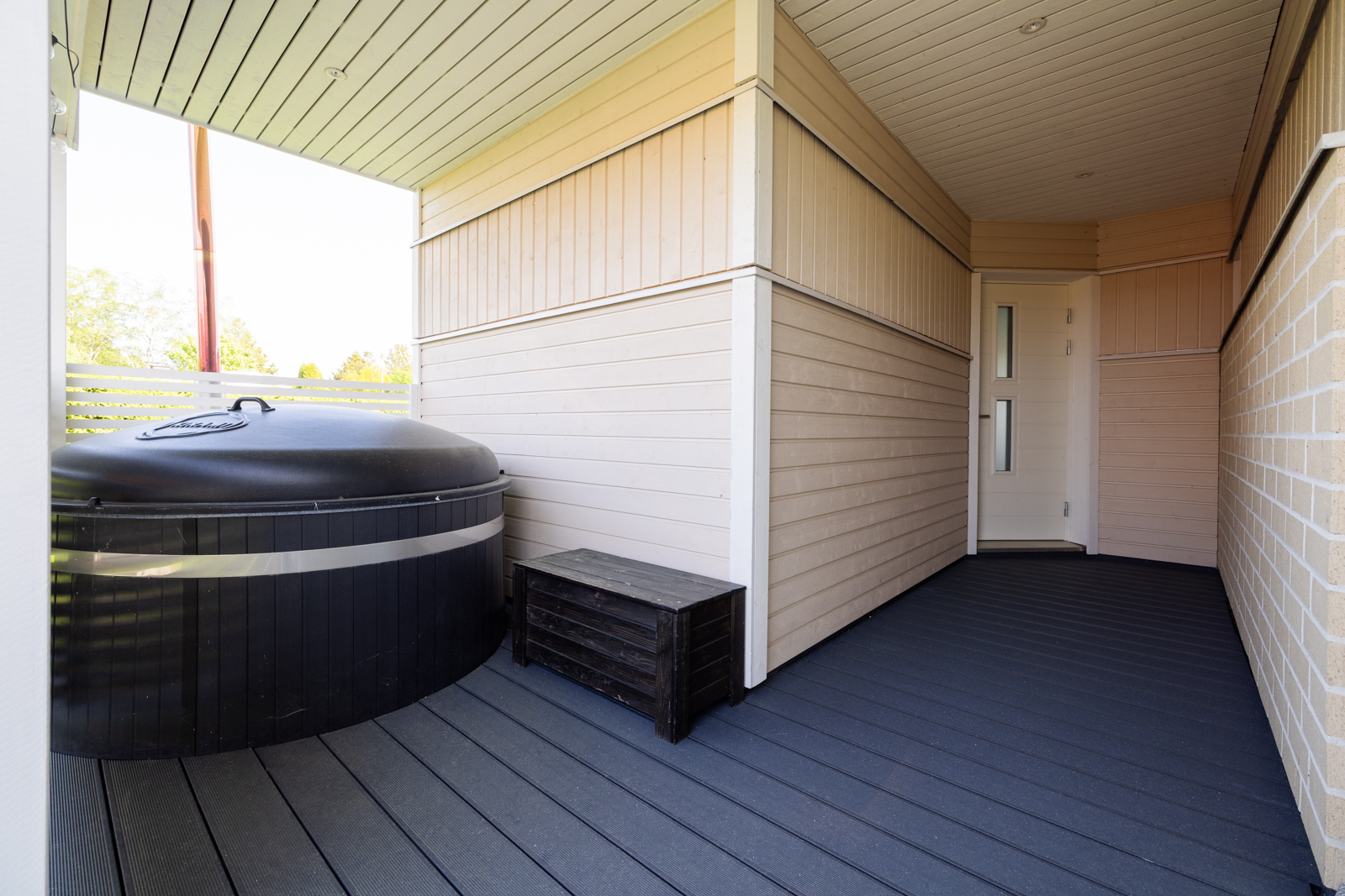 | Tehdyt remontit | Kohteessa 2018 tehdyt remontit: Remontti koko taloon + lisäosien rakentaminen v. 2018: Koko talo: Lattiat uusittu: vinyylilankku tai laatta -Katot: vaihdettu valkoinen paneeli -Seinät: tapetit vaihdettu ja tai maalattu -Kaikki kaapistot vaihdettu runkoineen ja ovineen, osassa peililiukuovet -Vesikalusteet, hanat ja vesilinjastojen jakotukit vaihdettu, lisätty 2kpl ulkohanoja Sähköistys: -Valaistukset mittavasti uusittu, vaihdettu LED-valaisimiin (kaikissa huoneissa upotetut LED-spotit ja osassa myös led-nauhoja) -Pistorasioiden peitelevyt, valokatkaisijat ja himmentimet vaihdettu oUusien säädösten mukaiset sarjaan kytketyt palovaroittimet asennettu -Ulkovalaisimia lisätty ja vaihdettu -Ulkopistorasioita lisätty -Talotekniikka ja lämmitys: Ilmanvaihtokone vaihdettu uusia kuutioita vastaavaksi (ilmanvaihtojärjestelmässä automaattinen kosteuden tunnistus ja ilmanvaihdon tehostus), ilmastointihormien nuohous ja koneen säätö tehty remontin jälkeen. LTO, automaattinen kosteuden tunnistus ja ilmastoinnin tehostus Lämminvesivaraaja vaihdettu Ilmalämpöpumpun asennus Takka uusittu Kylpyhuone ja sauna sekä vieras-wc ja khh remontoitu kokonaan. Väliovet uusittu. Kaapistot ja vesikalusteet sekä pinnat uusittu. Saunan pinnat, lauteet ja kiuas uusittu. Rakennettu 2 kokonaan uutta vessaa joissa molemmissa suihkut. Keittiö uusittu -Ulko-ovet ja lukitukset vaihdettu, terassit / portaat uusittu (komposiitti-lankku) Paljuterassi rakennettu Rakennettu uusi makuuhuone (jossa oma vessa/suihku ja uloskäynti terassille) Vanha varasto muutettu makuuhuoneeksi: -oma sisäänkäynti, lukko eri sarjoituksella -oma wc/suihku -minikeittiö Em. tilaan mahdollista yhdistää lisämakuuhuone ja oma ulko-ovi + terassi takapihan puolelle Rakennettu uusi lämmin varasto ja autokatos 2 autolle sekä pyöräkatos Muut huoltotoimenpiteet: Talon vanhan osan puuosat maalattu v. 2012 Pihan asfaltointi 2018 Kivijalan pinnoitus v. 2019 Välikaton lisäeristys v. 2022 (Termex) Salaojien uusiminen (ei katetun terassin osalta), pihakivetysten tekoa, puuladon pintakäsittely v. 2024 Valokuitu 2025 |