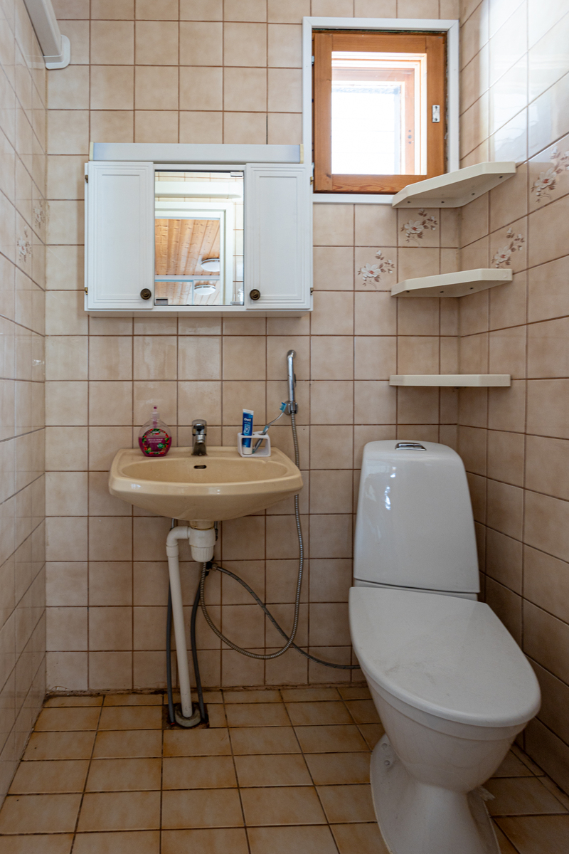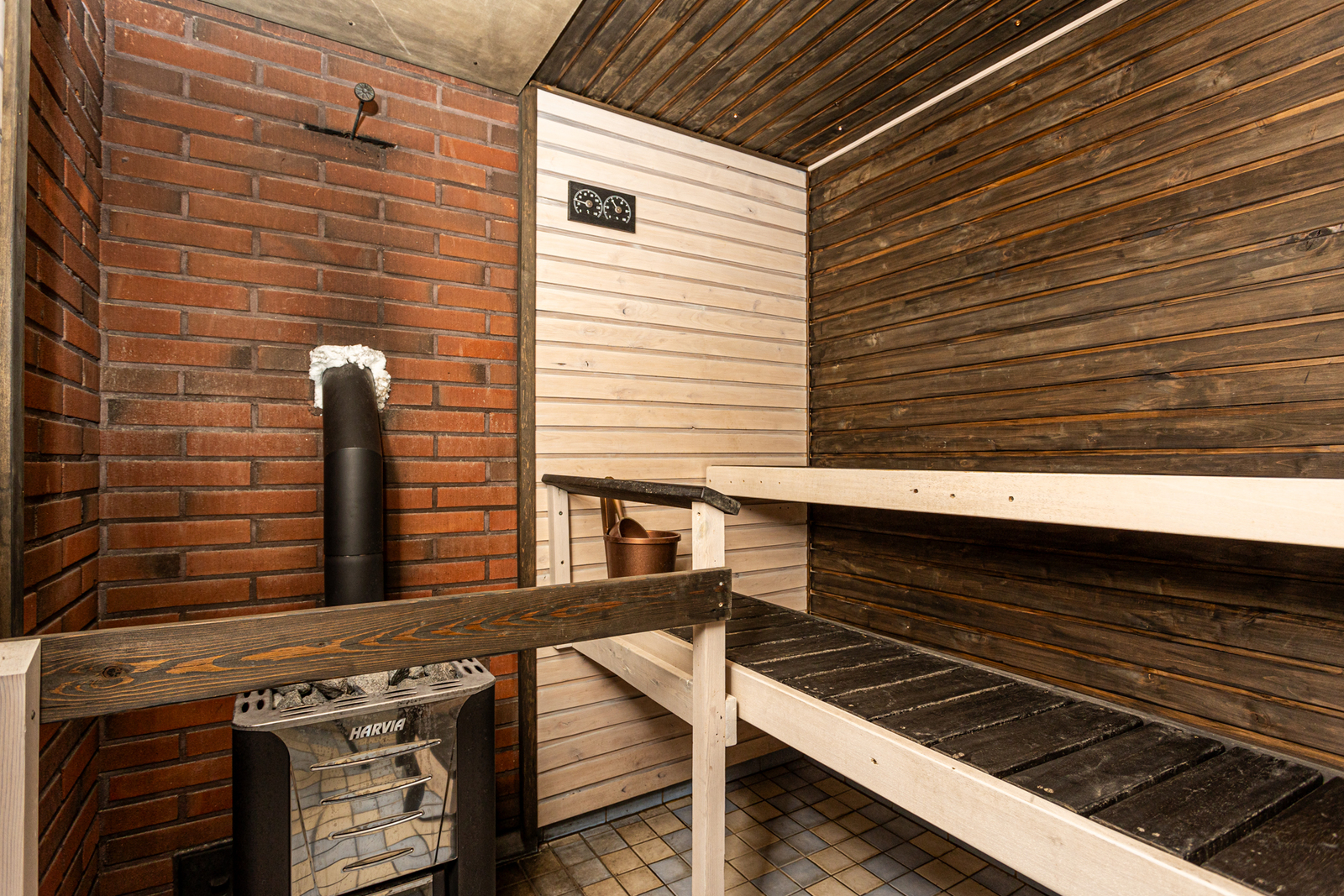 Kylpyhuoneen ja puulämmitteisen saunan saneeraus tehty 2003 vuonna, saunan lauteet, sekä katto ja seinäpinnat käsitelty uudestaan, kiuas uusittu, sekä kylpyhuoneen katto käsitelty 2022 vuonna, kylpyhuoneen varustuksessa wc istuin.