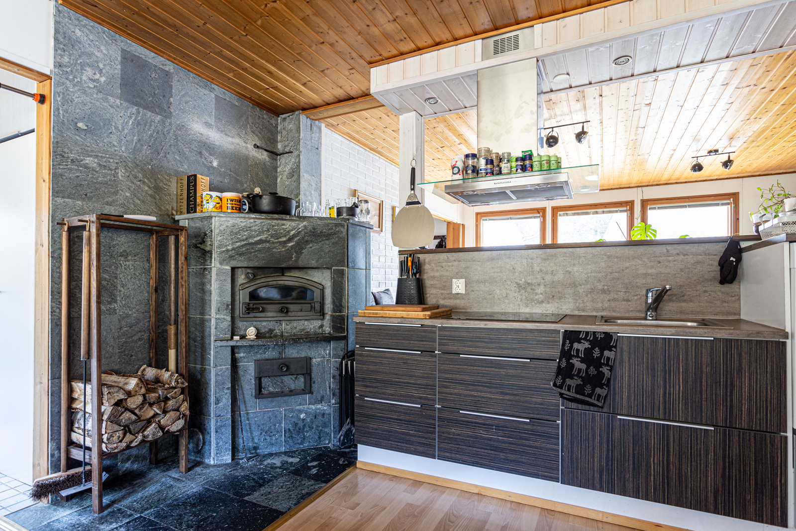 | Keittiön kuvaus | Liesi (Induktioliesi ja erillisuuni), työtasot (laminaatti), seinät (maali), lattiat (laminaatti), astianpesukone, jääkaappi, liesi, erillisuuni, liesituuletin ja kiinteät valaisimet, Seinissä osin puolipaneeli ja katossa paneeli. |