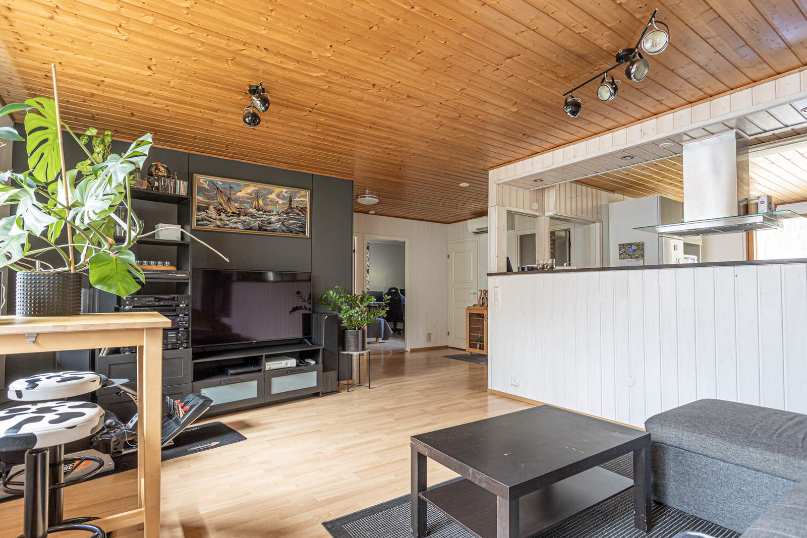 Talosta löytyy kaksi hyvänkokoista makuuhuonetta ja takkahuone jota voi käyttää kolmantena makuuhuoneena. Tilava ja valoisa olohuone, toimiva keittiö jonka kalusteet uusittu 2013 vuonna. Lisäksi erillinen wc ja autotalli, sekä varastotiloja talon päädyssä.