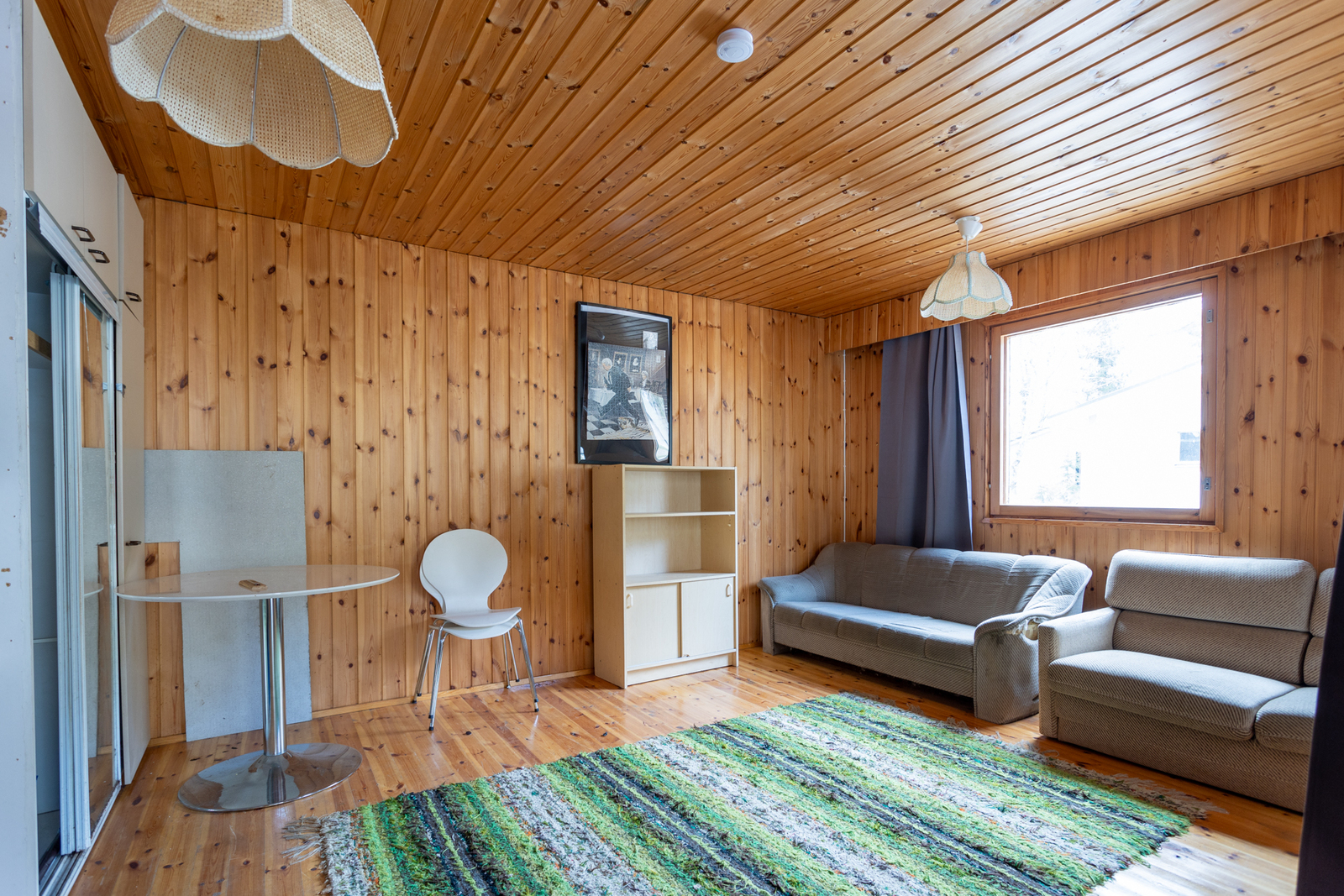 | Olohuoneen kuvaus | Lattiat (laminaatti), Seinät maalattu ja katto paneloitu. |