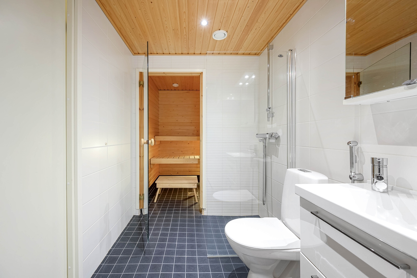| Saunan kuvaus | Seinät (puu), lattiat (laatta), Sähkökiuas |