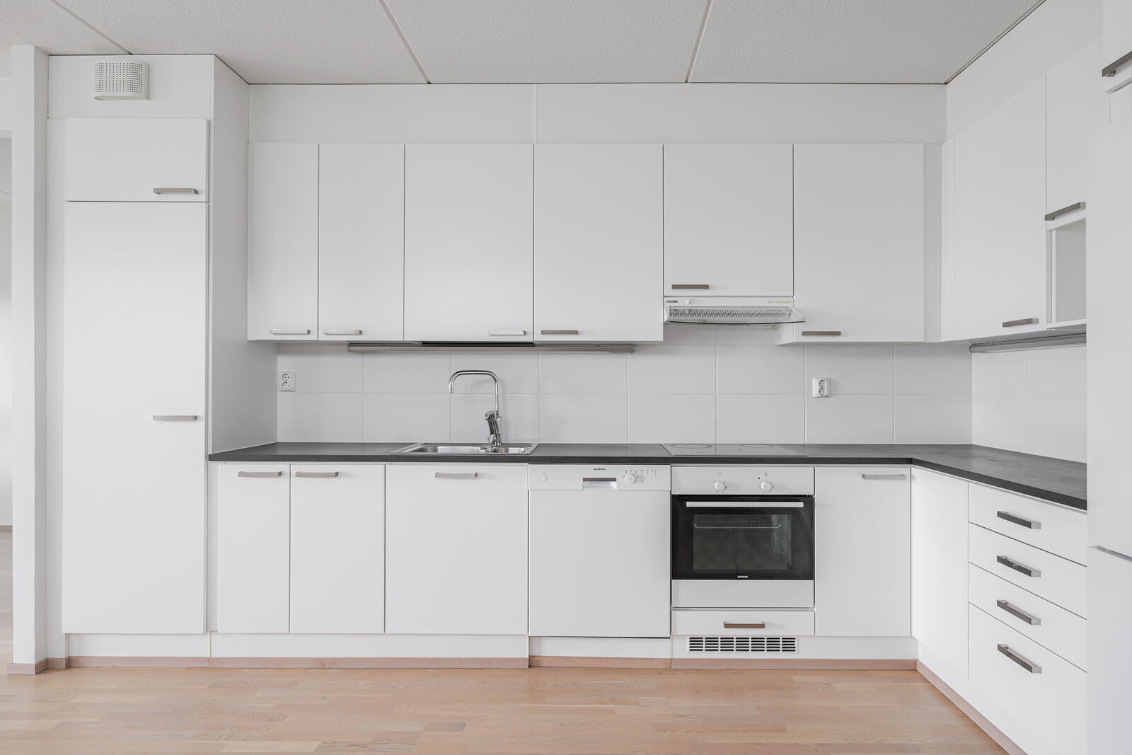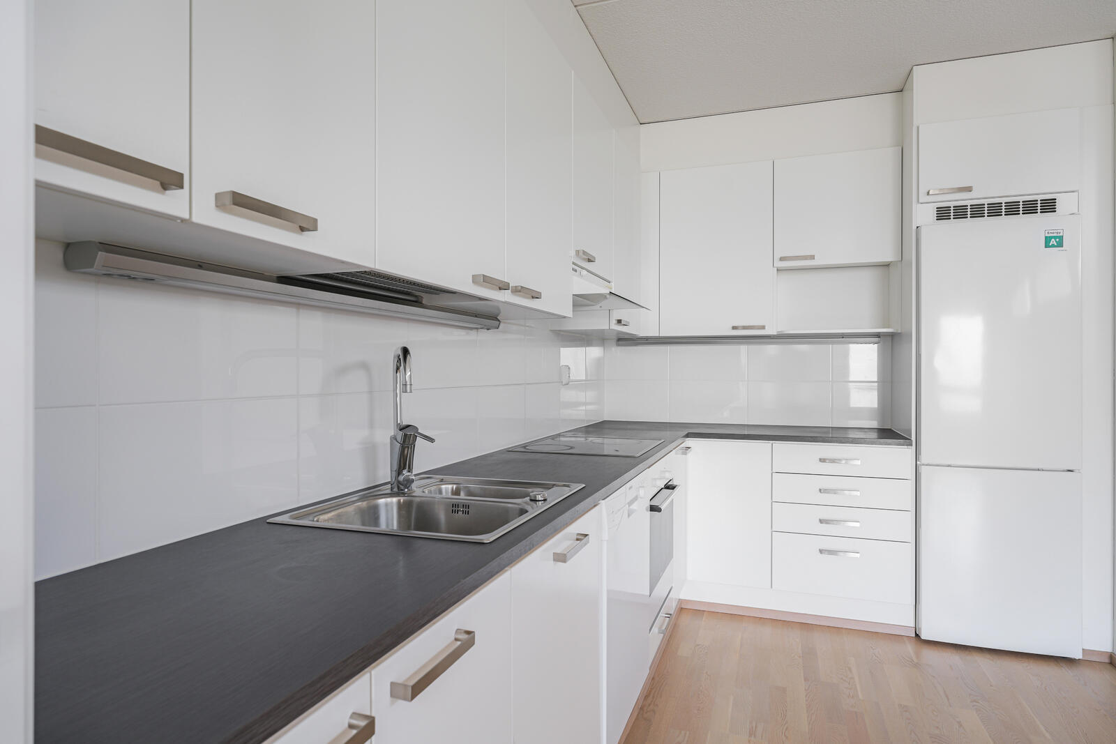 Valoisa kulmahuoneisto 5/5 kerroksen kulmahuoneisto v. 2013 valmistuneessa yhtiössä. Tilava keittiön ja olohuoneen muodostama yhtenäinen tila, ylin kerros hissitalossa, oma sauna ja lasitettu parveke ovat ehkä parasta tässä kodissa.