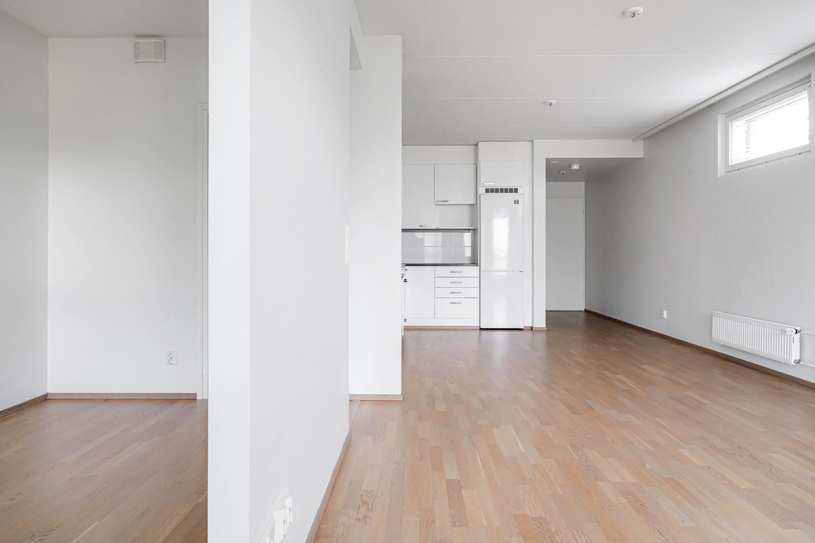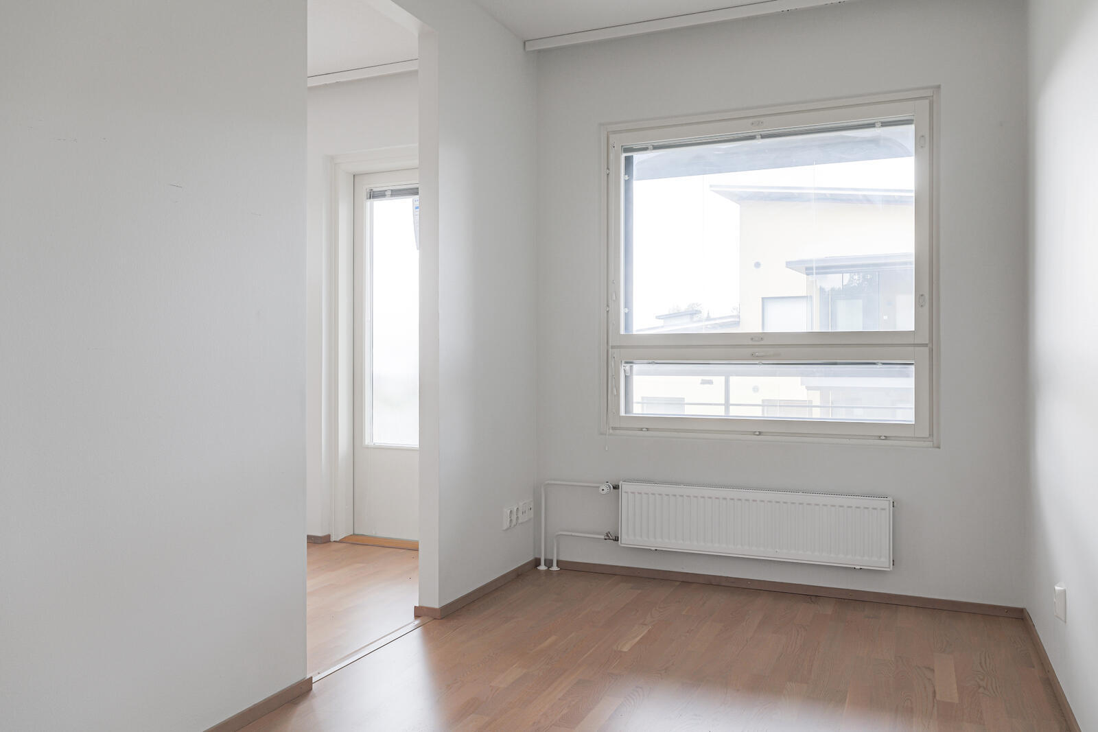 Seinät (maali), lattiat (parketti), käynti lasitetulle parvekkeelle. Parvekkeelta näkymä pohjoiseen, etelään ja länteen. |