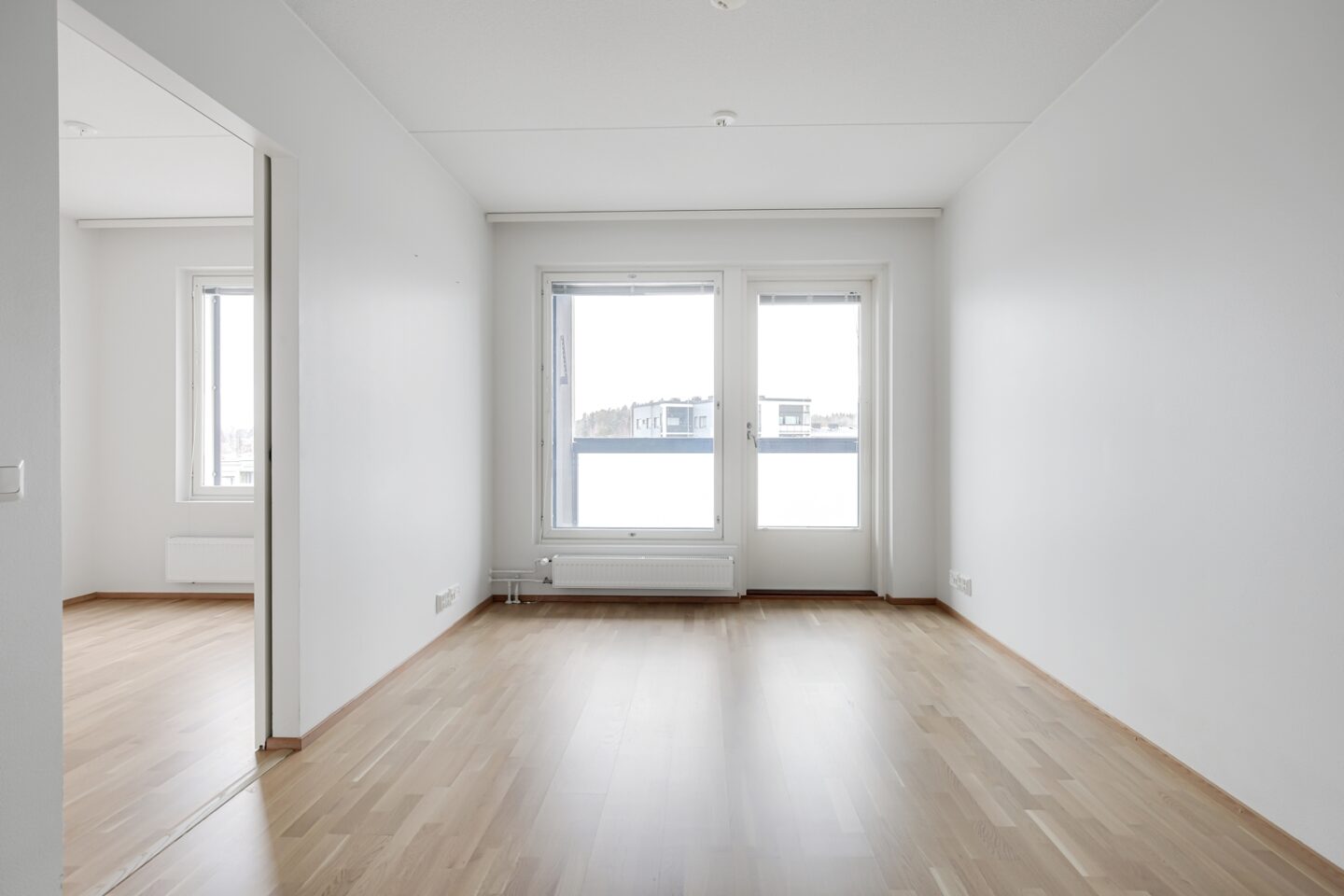 Olohuoneesta käynti lasitetulle parvekkeelle. |