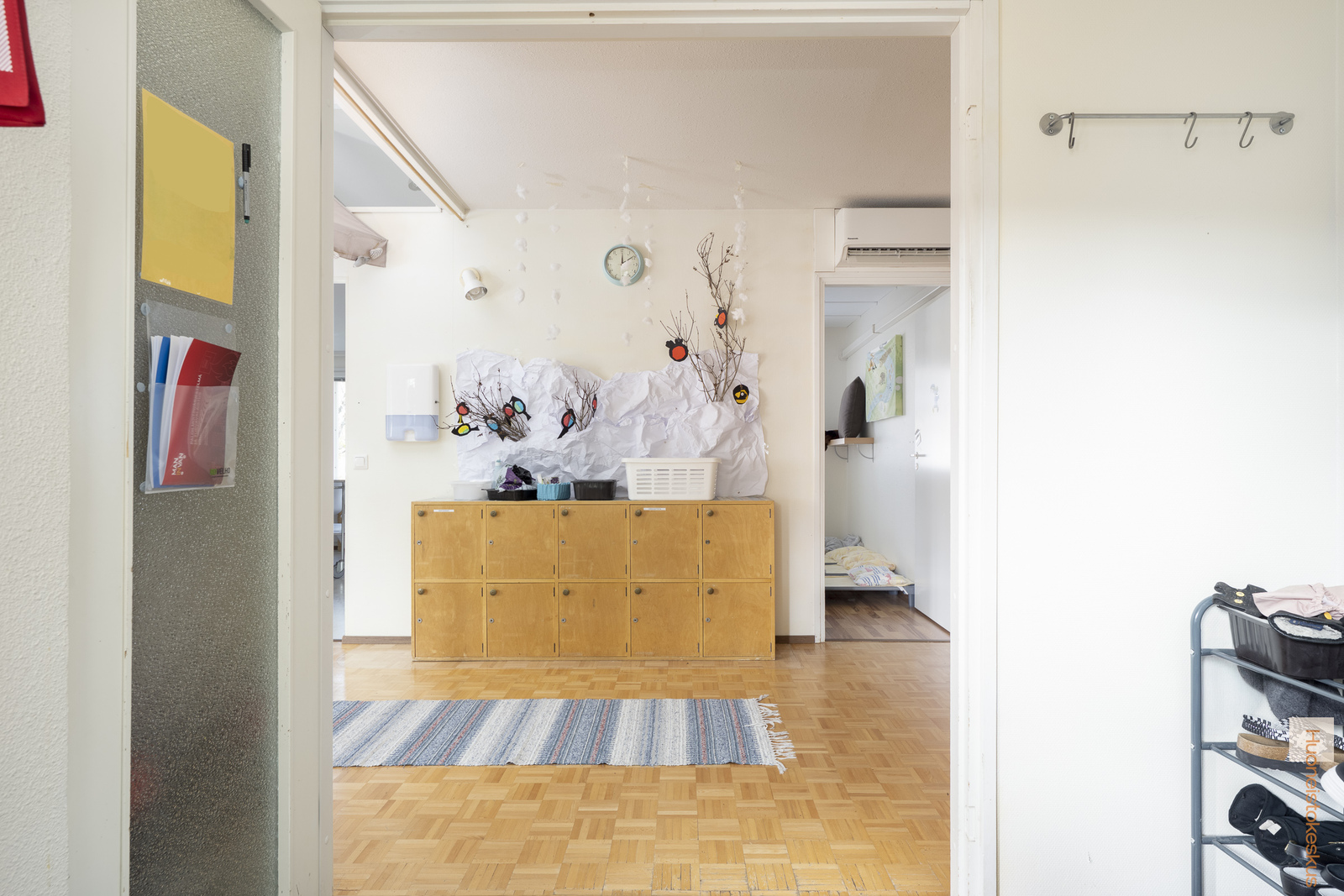 | Tilojen kuvaus | Eteisessä parkettilattia, tuulikaapissa laattalattia. |