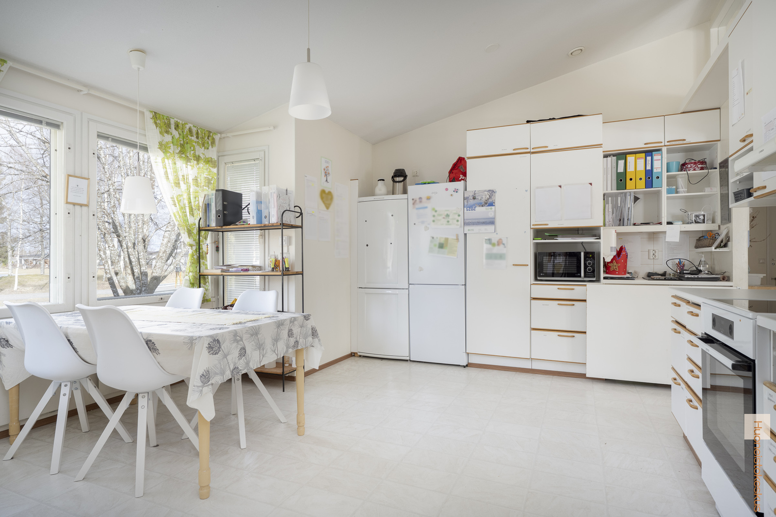 | Muuta kauppaan kuuluvaa | Lisätietoja sisältyvistä varusteista: ilmalämpöpumppu, jätesäiliö, kaapistot, keskuspölynimuri, kiinteät valaisimet, lämminvesivaraaja, sälekaihtimet/rullaverhot, verhotangot |