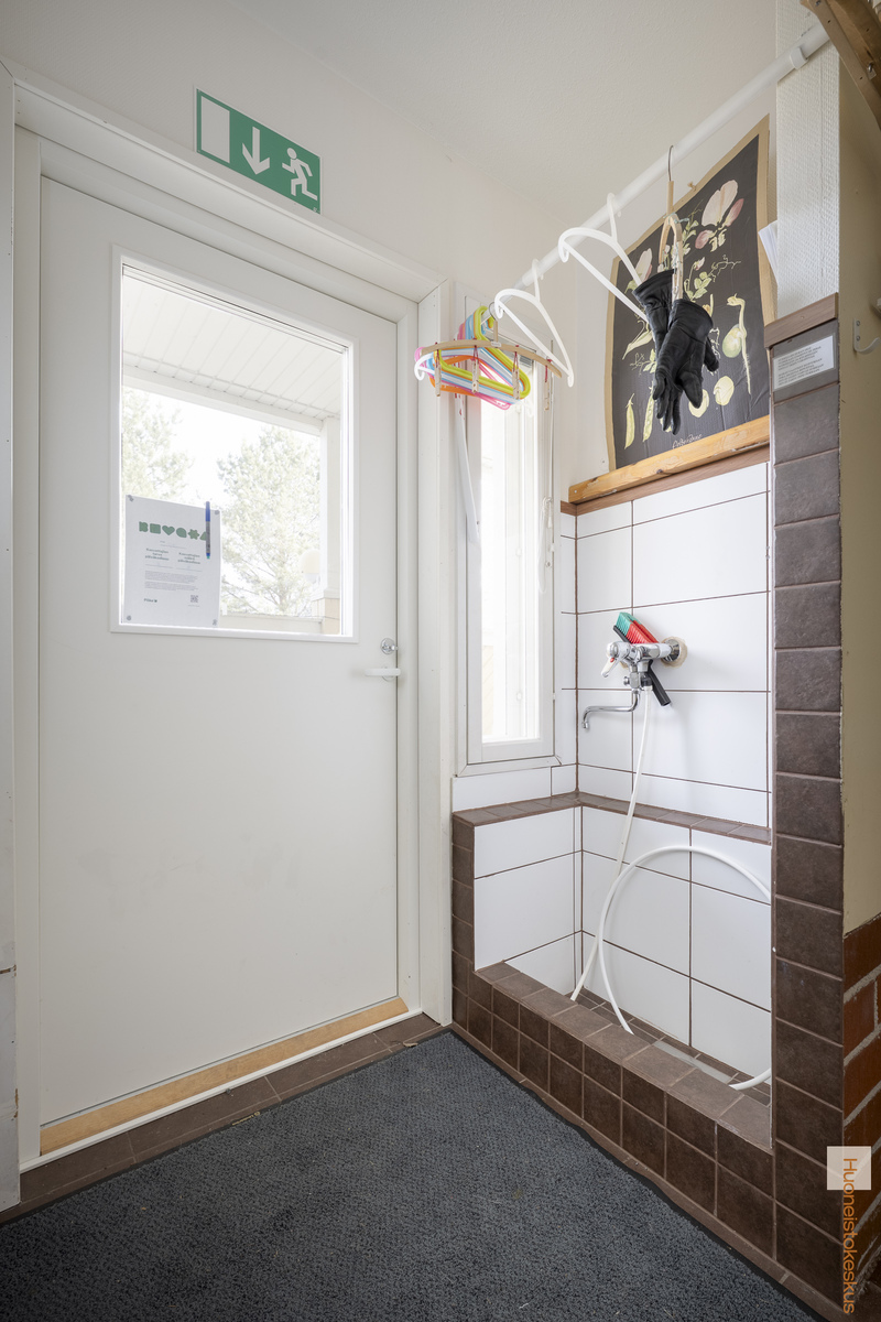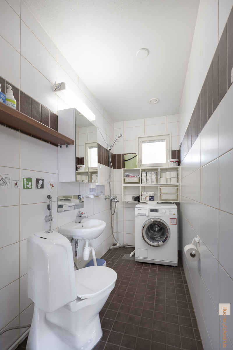 | Kodinhoitohuoneen kuvaus | Lattialämmitys, keskuspölynimuri, pesukoneliitäntä, pyykkikaapit, kurapiste ja pesuallas, lattiat (laatta), seinät (kaakeli), Kodinhoitohuoneita 2 kpl. |