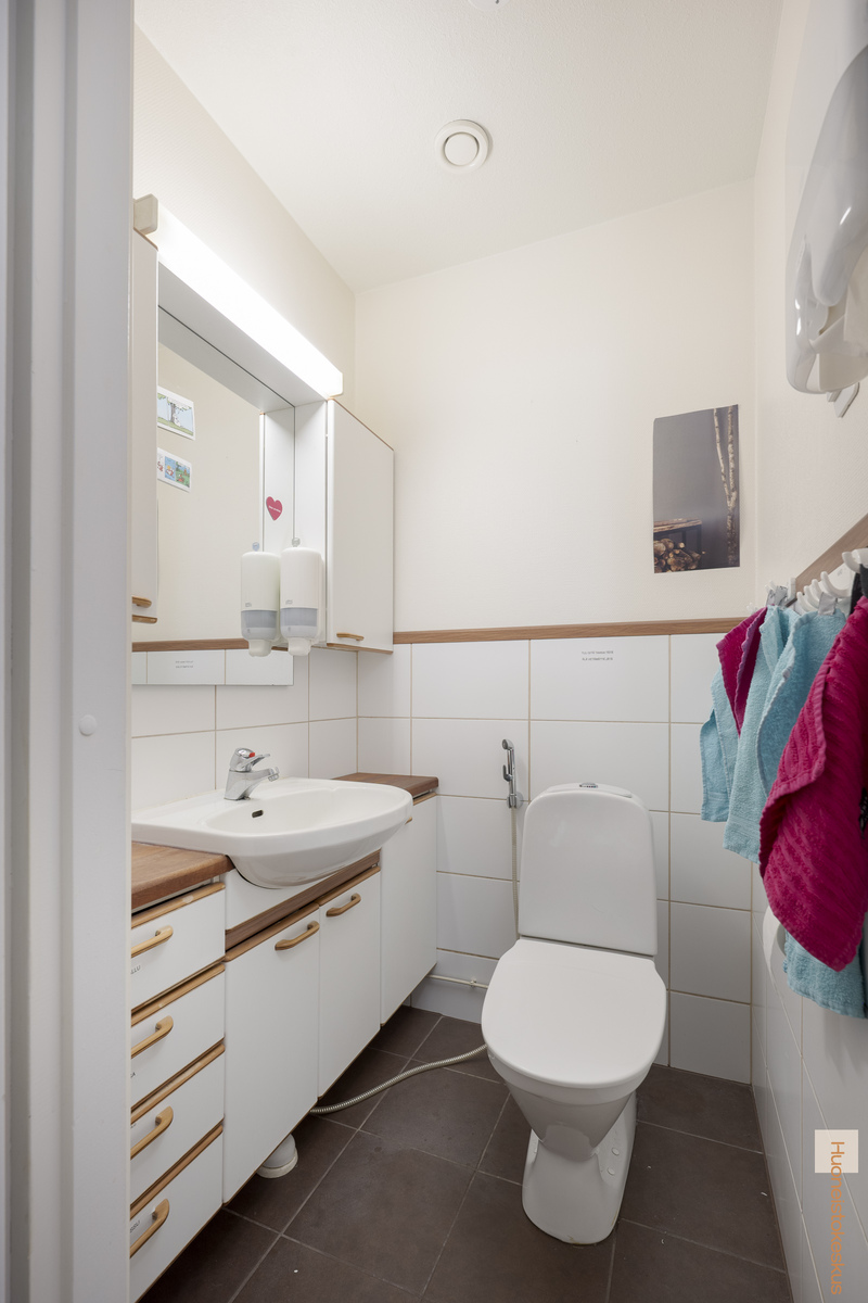 | WC-tilojen kuvaus | Lattialämmitys ja bidee-suihku, seinät (Lasikuitutapetti ja osalaatoitus), lattiat (Laatta) |
