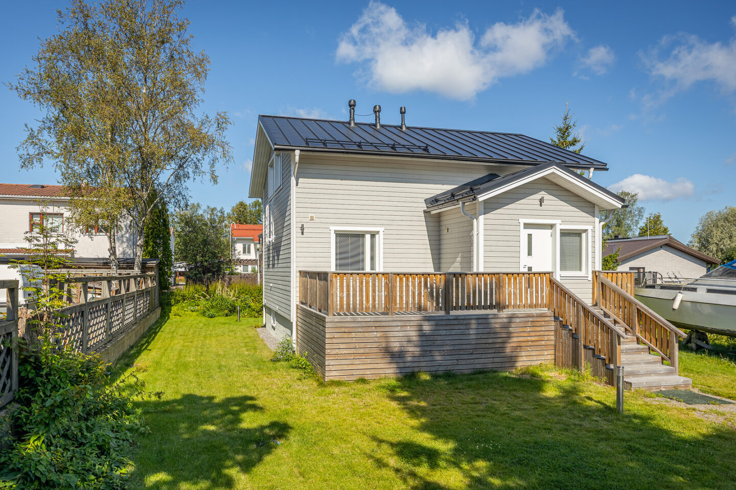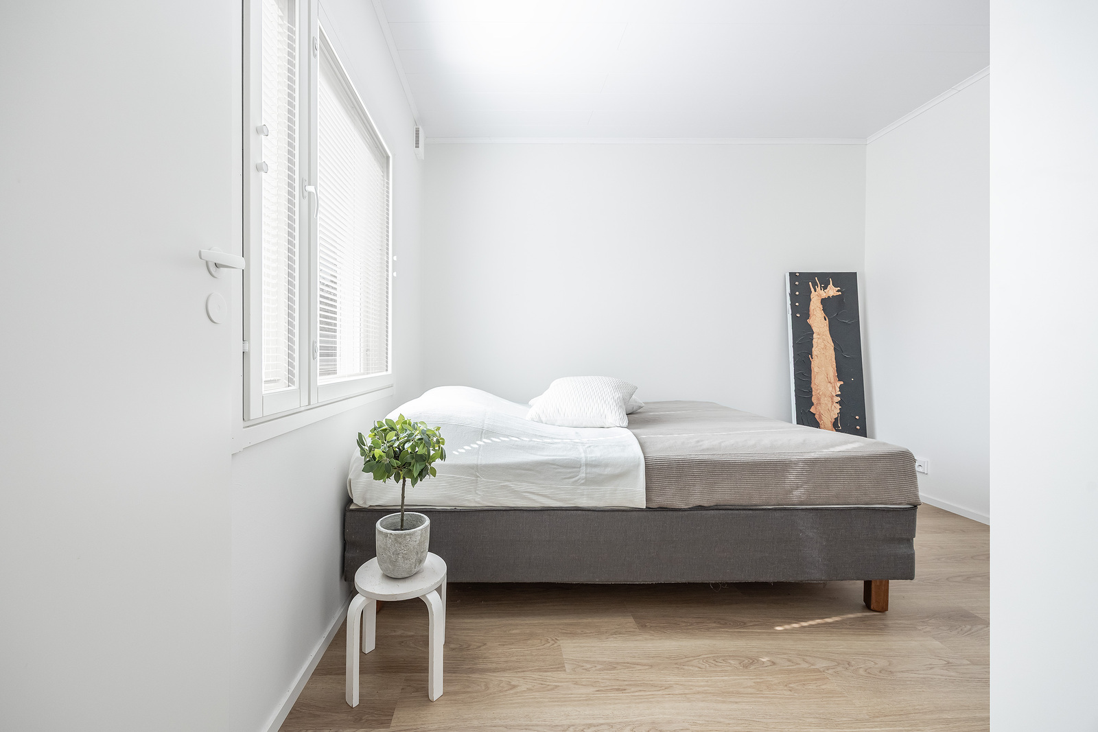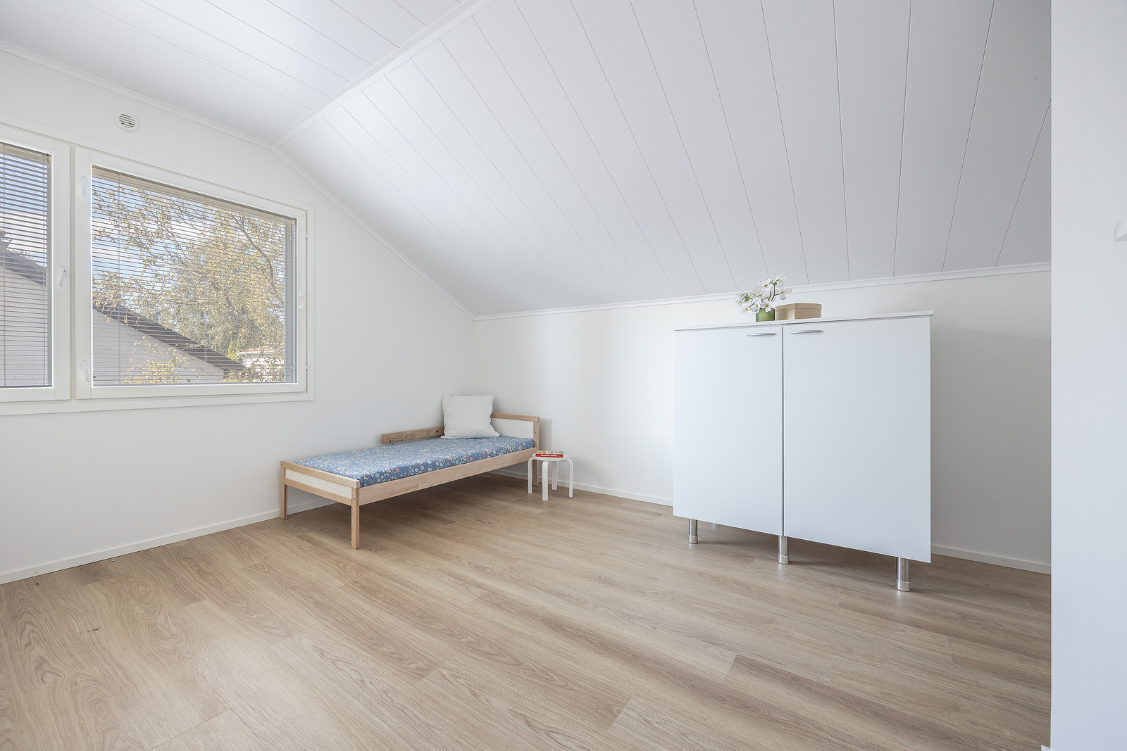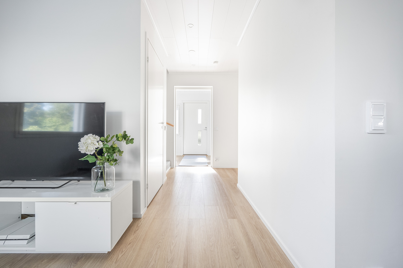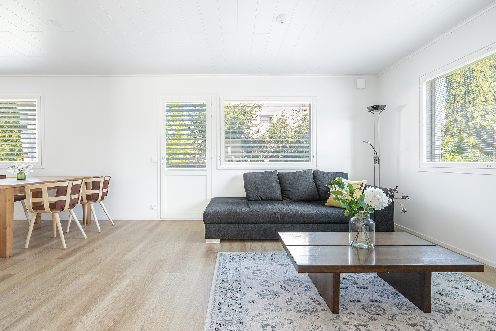Vanhaa & uutta! Talo on valmistunut vuonna 1955 ja saneerattu laajalti vuonna 2024. Saneerauksessa on uusittu muun muassa talon julkisivu, katto, salaoja- ja hulevesijärjestelmät, LVIS, kaukolämpöjärjestelmä, ikkunat, ovet sekä sisätilojen pintamateriaalit ja kalusteet. Kaikissa kerroksissa on vesikiertoinen lattialämmitys, joten seinäpattereita ei ole. Tämä mahdollistaa huoneiden vapaamman sisustamisen. Viistokatto yläkerrassa luo ”vanhan talon” tunnelmaa.