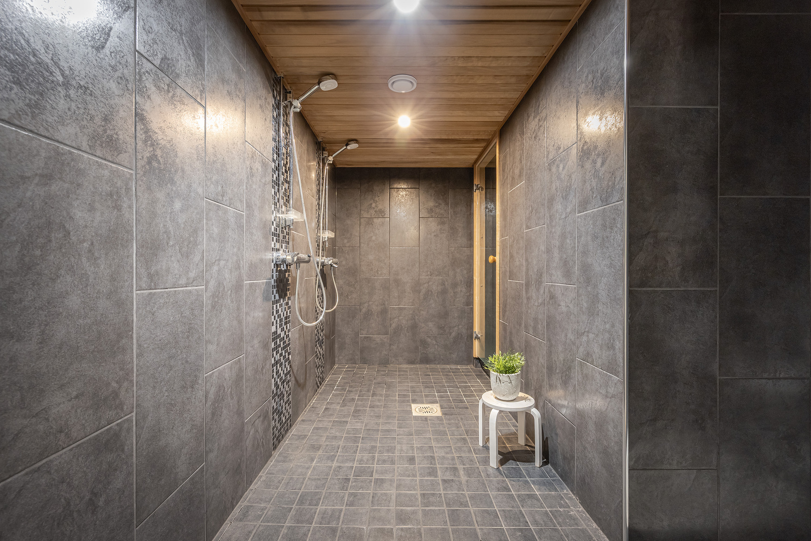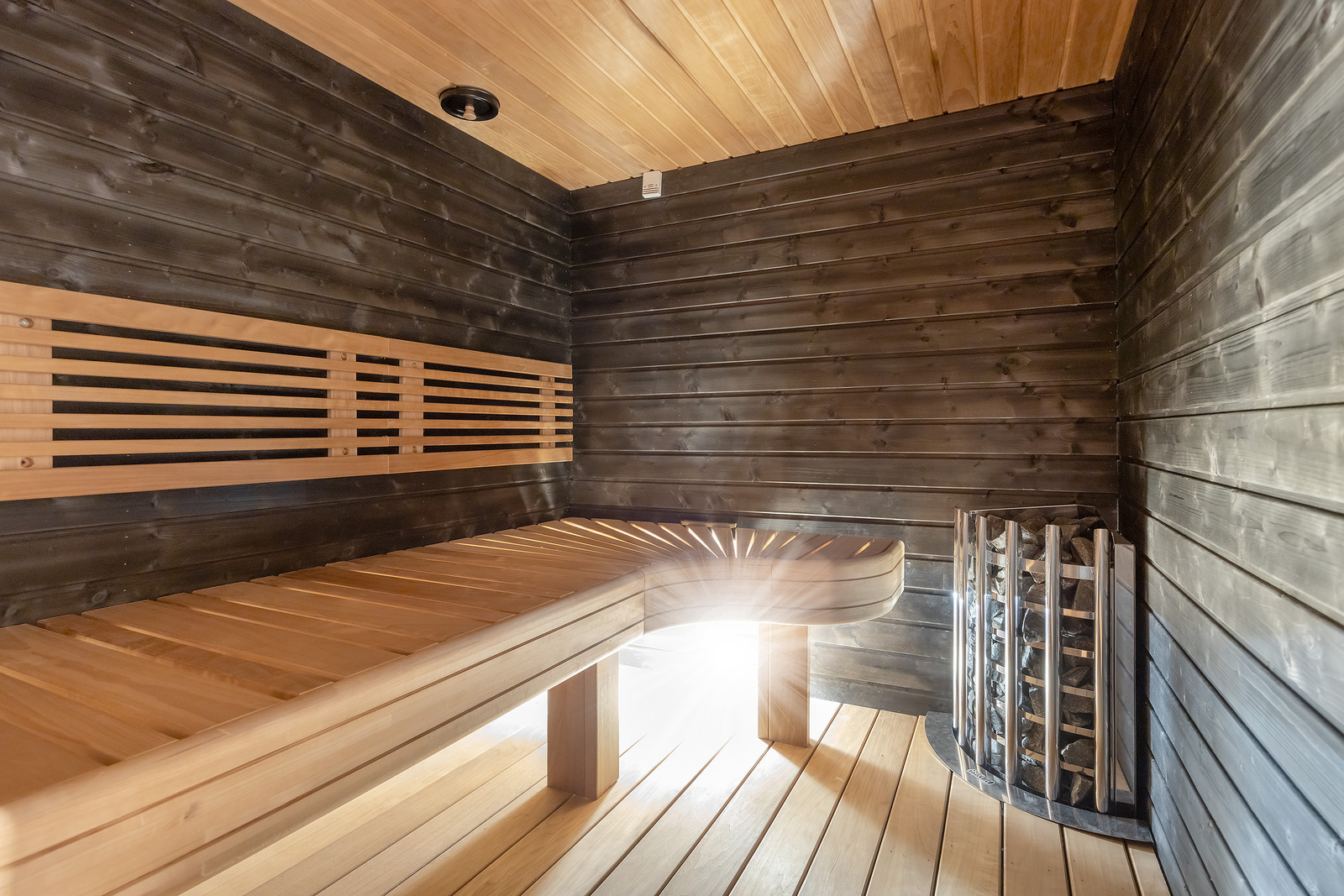 | Saunan kuvaus | Tyylikäs sauna, jossa sähkökiuas. |