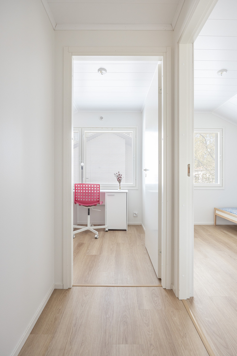 | Lattiamateriaalien kuvaus | Vinyylikorkki: 1. ja 2. kerroksissa Laminaatti: osassa kellaritiloja Laatta: wc-, märkätiloissa ja osassa kellaritiloja Matto: portaikko 1-2 krs Maali: portaikko kellariin |