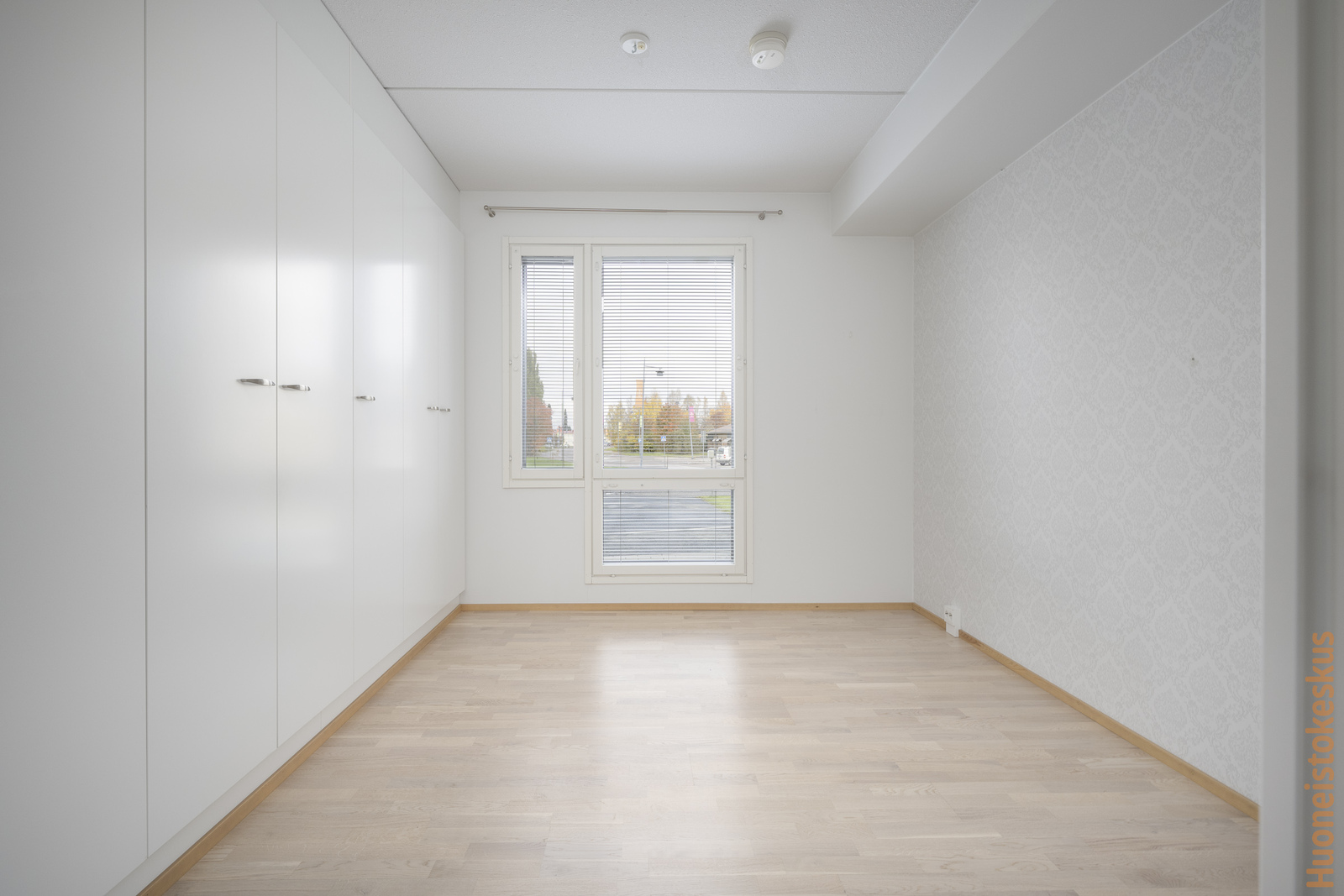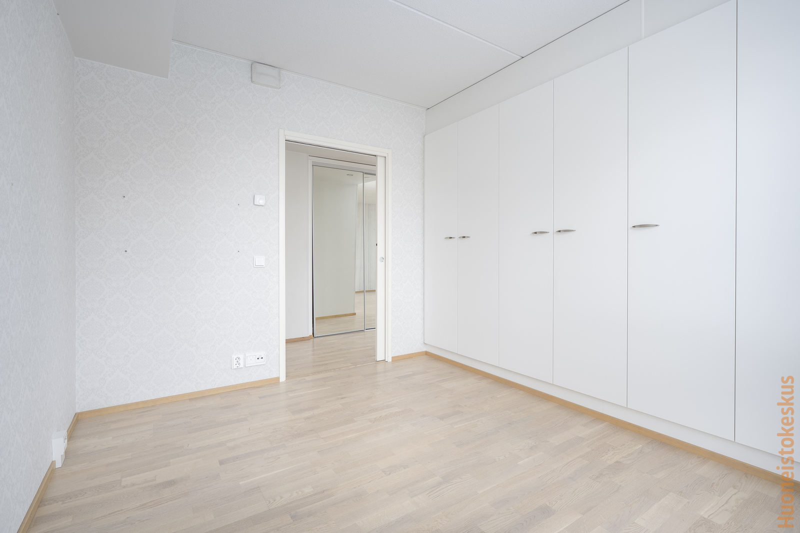 | Muuta kauppaan kuuluvaa | Makuuhuoneessa on liukuovi ja kaapistossa on varusteena ulosvedettävä silityslautataso. Lisätietoja sisältyvistä varusteista: huoneistokohtainen ilmanvaihtokone, ilmalämpöpumppu, kaapistot, kiinteät valaisimet, kuivauskaappi/-rumpu, pyykinpesukone, sälekaihtimet/rullaverhot, verhotangot. |