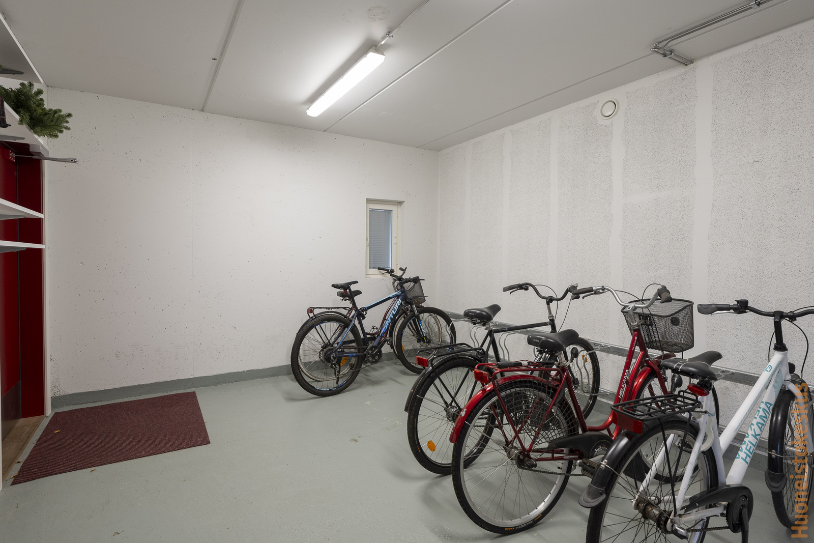 Huoneistokohtainen lämmin varastotila ja taloyhtiön pyörävarasto sijaitsevat myös kerrostalon alakerrassa. Ovipuhelinjärjestelmä tuo talon asukkaille asumisturvallisuutta.