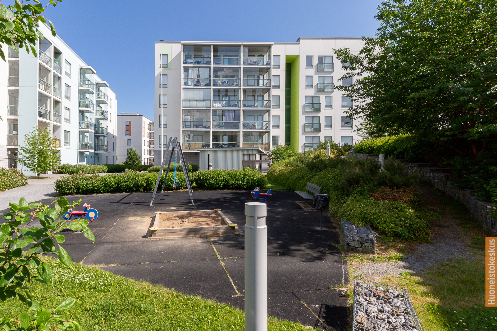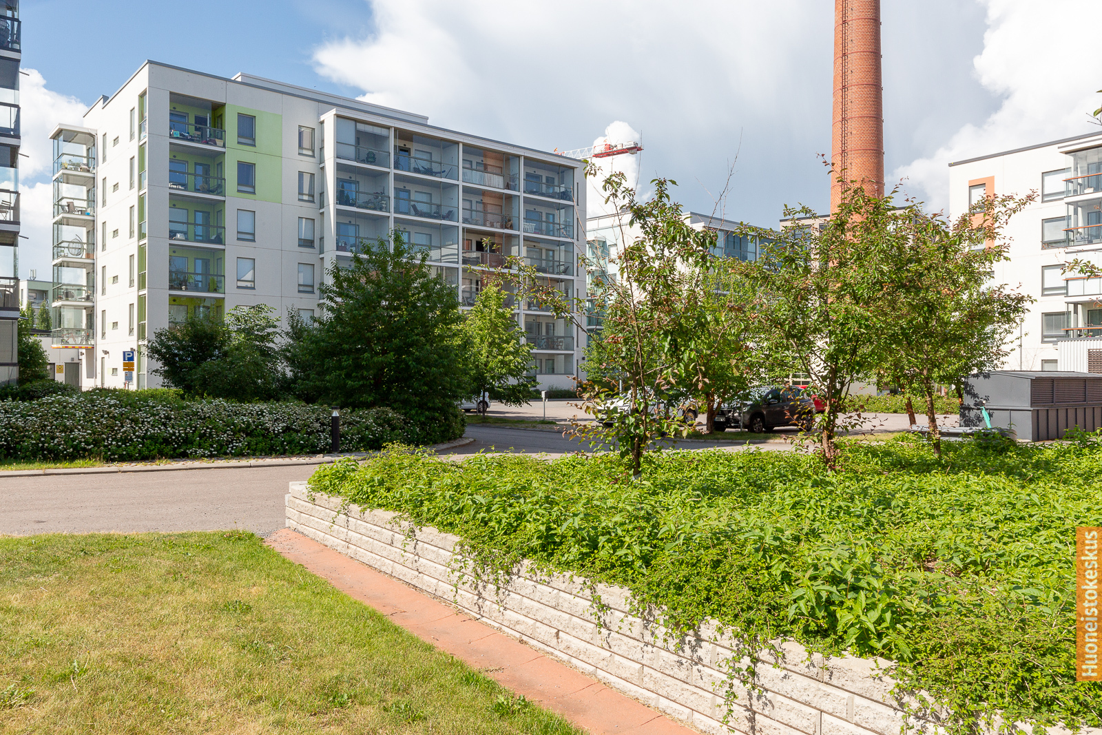 Trendikkään Härmälänrannan alueen rantamaisemista, ihana 5. kerroksen kolmio jonka tontinosuus on lunastettu omaksi.