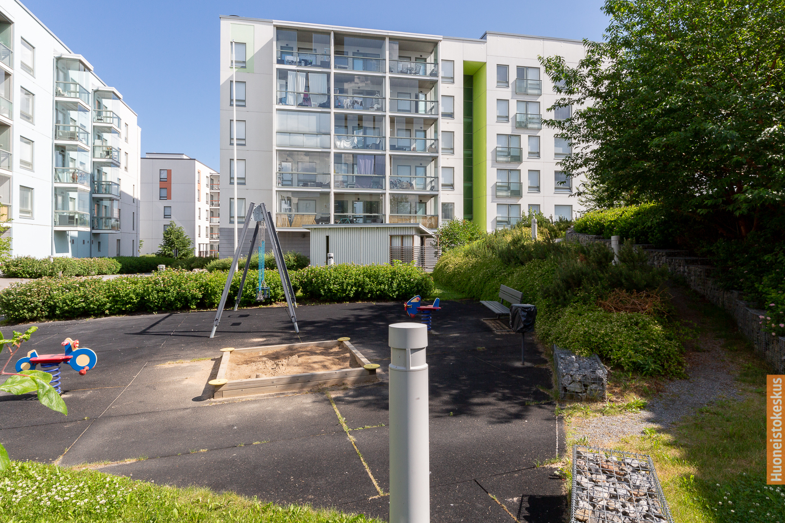 Leikkipaikka sijaitsee naapuritontilla yhteisjärjestelysopimuksen mukaisesti.