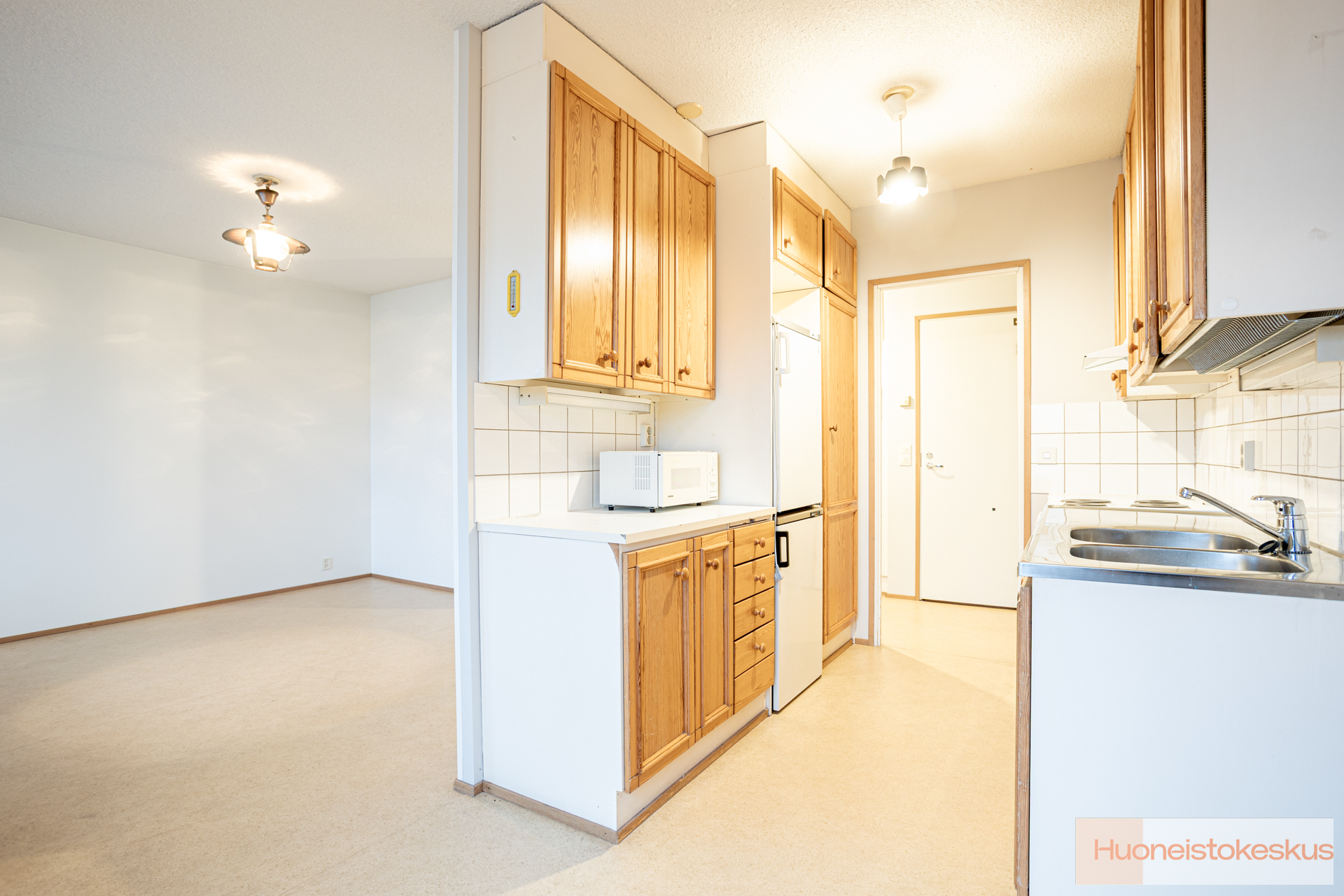 Heti vapaa, saunallinen, toisen kerroksen päätyhuoneisto vuonna 1985 valmistuneessa kaukolämpötalossa.