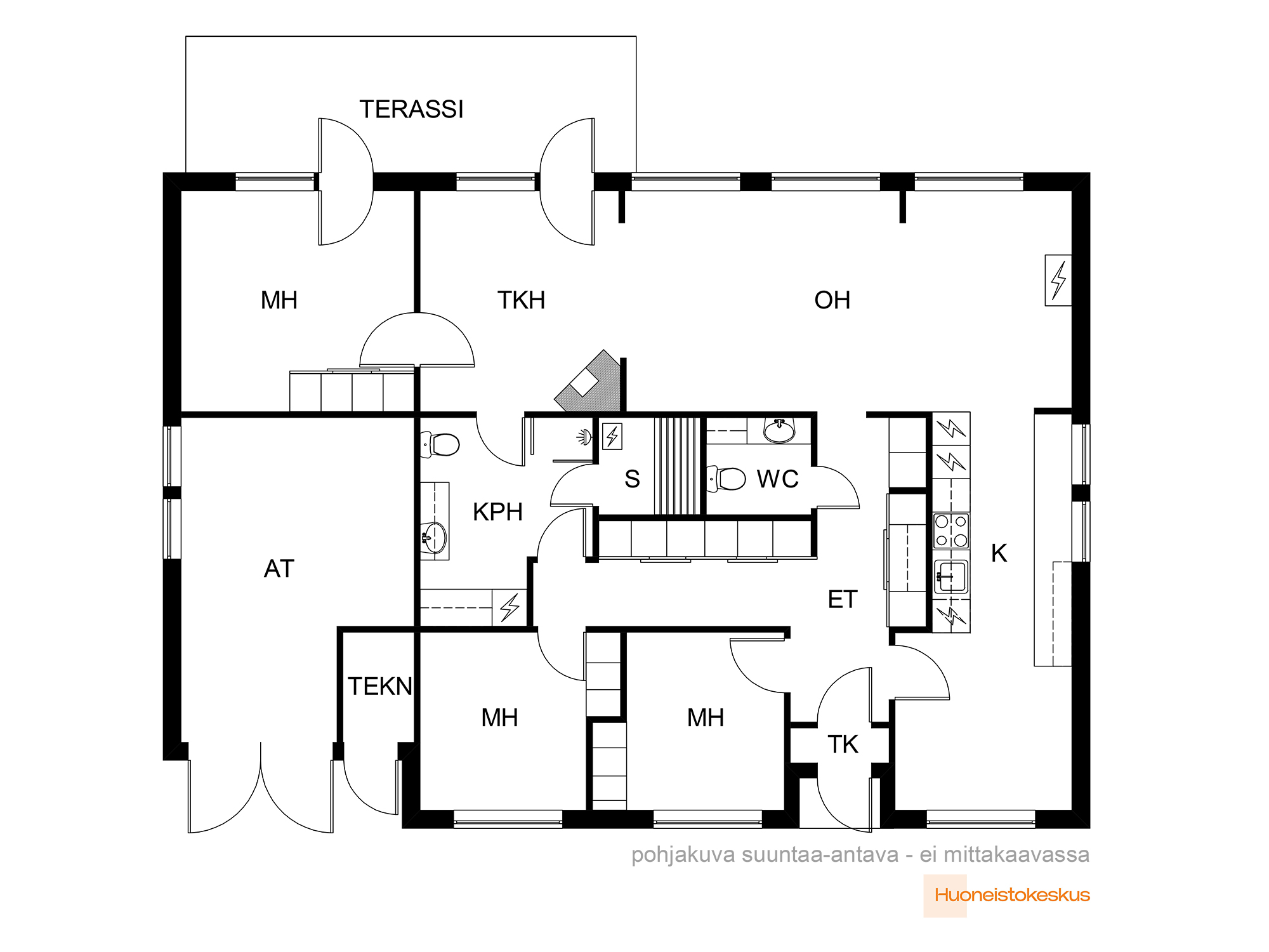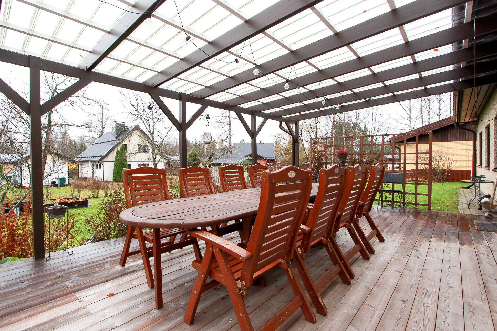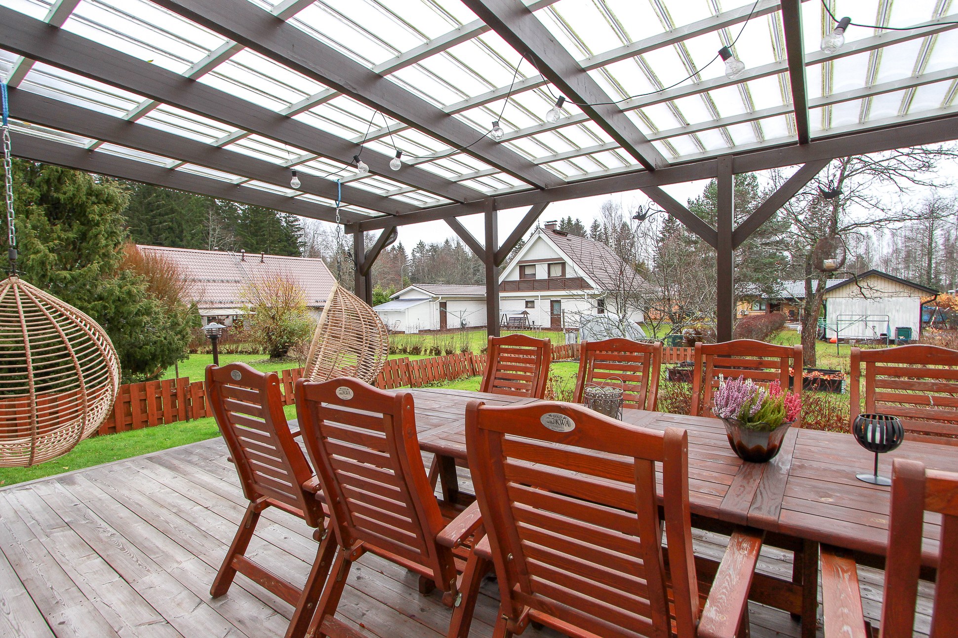 Kodin sydän on avara olohuone, josta on yhteys niin ruokailutilaan kuin takkahuoneeseenkin. Takkahuoneesta pääsee suoraan suurelle 32 m2 valokatetulle terassialueelle, joka toimii loistavana lisätilana kesäisin. Keittiössä on runsaasti kaappi- ja työtilaa, mikä tekee ruoanlaitosta ja leipomisesta vaivatonta. Kolme mukavankokoista makuuhuonetta tarjoavat rauhalliset puitteet lepoon ja talon pohjaratkaisu mahdollistaa tarvittaessa lisämakuuhuoneiden järjestämisen.