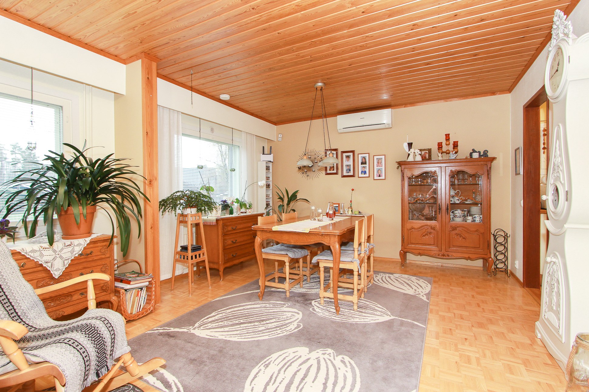| Olohuoneen kuvaus | Seinät (lasikuitutapetti ja maali), lattiat (parketti), Todella tilava olohuone, jossa näköyhteys avoimeen ruokailutilaan (entinen makuuhuone) sekä takkahuoneeseen. Takkahuoneesta kulkuyhteys mahtavan isolle 32 m2 valokatteelliselle terassialueelle, jossa on mukava viettää aikaa ystävien tai perheen kesken. |