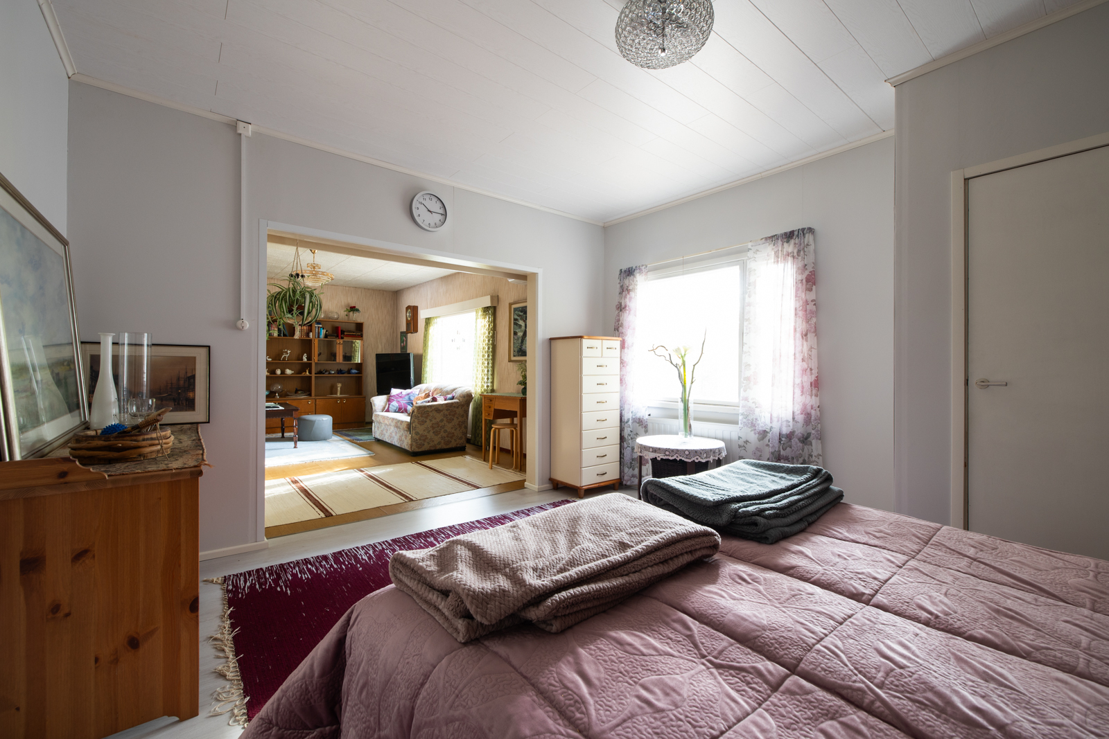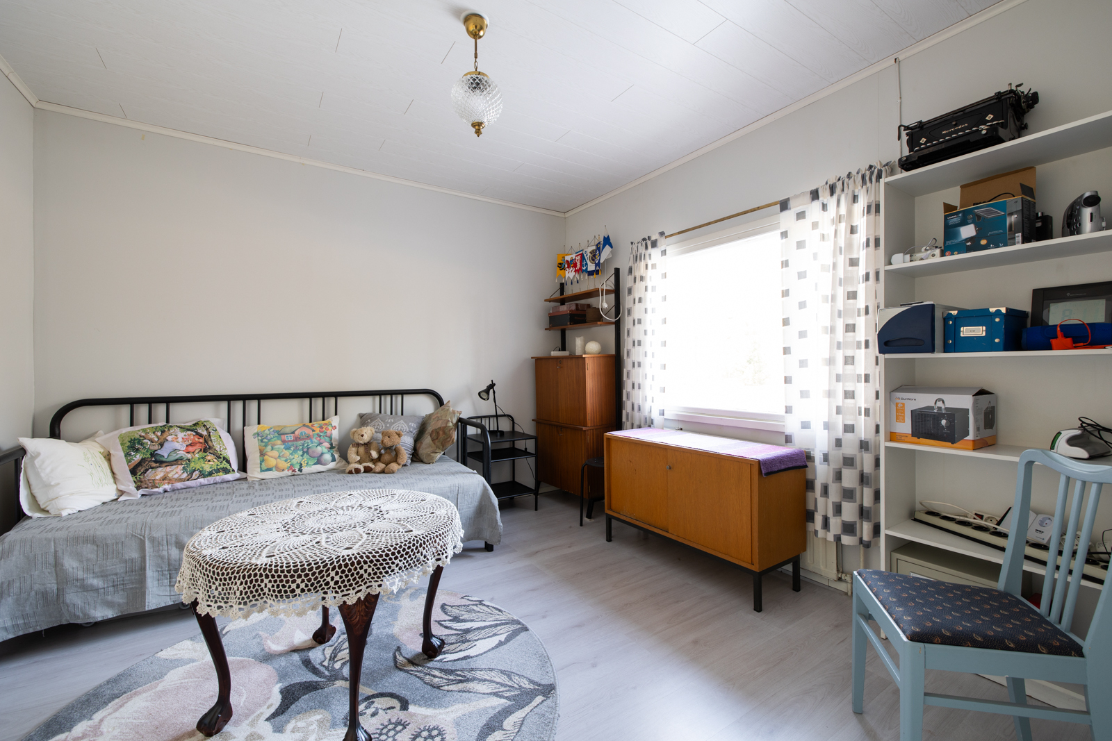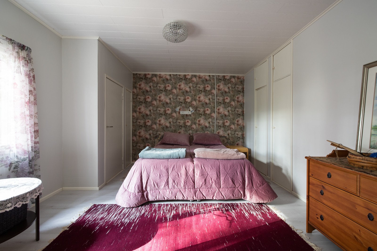 | Makuuhuoneen kuvaus | Lukumäärä: 2, seinät (tapetti ja maali), lattiat (laminaatti) |