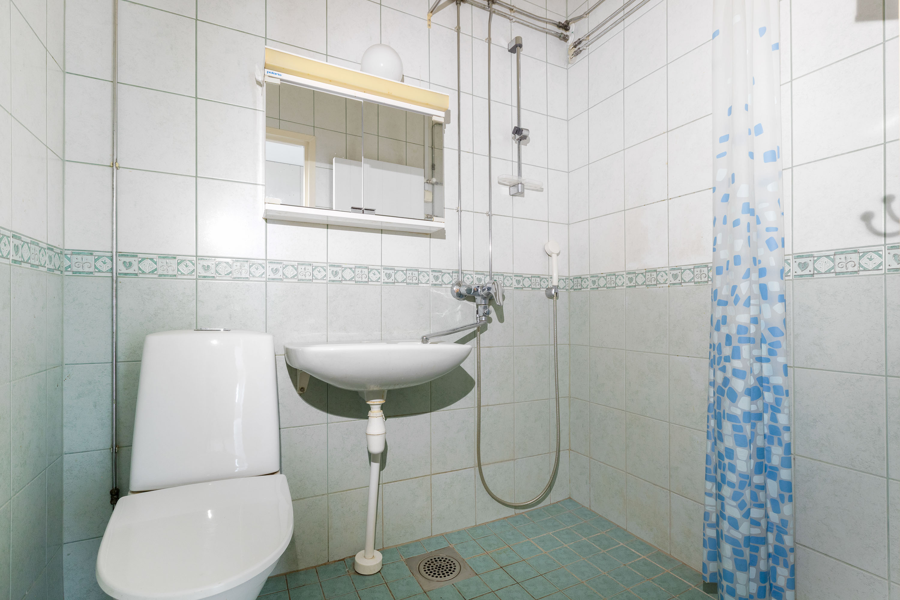 | Kylpyhuoneen kuvaus | WC-istuin, suihku, pesukoneliitäntä, peilikaappi, pesuallas ja lattialämmitys, seinät (kaakeli), lattiat (laatta) |