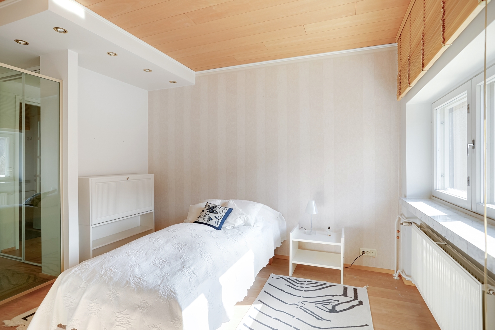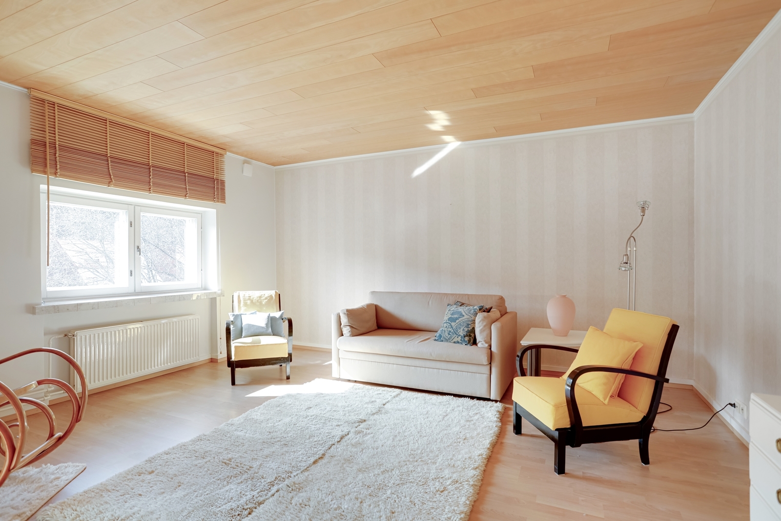 | Olohuoneen kuvaus | Seinät (tapetti), lattiat (laminaatti) |