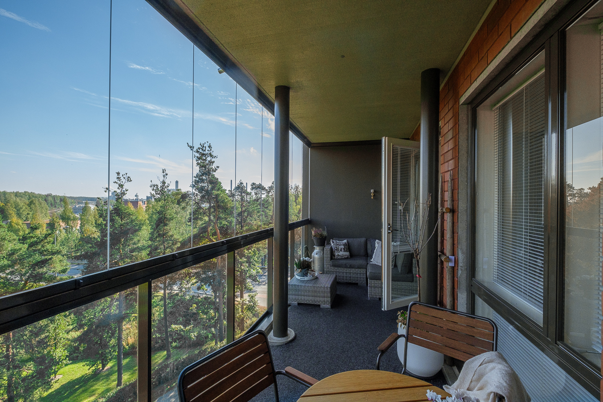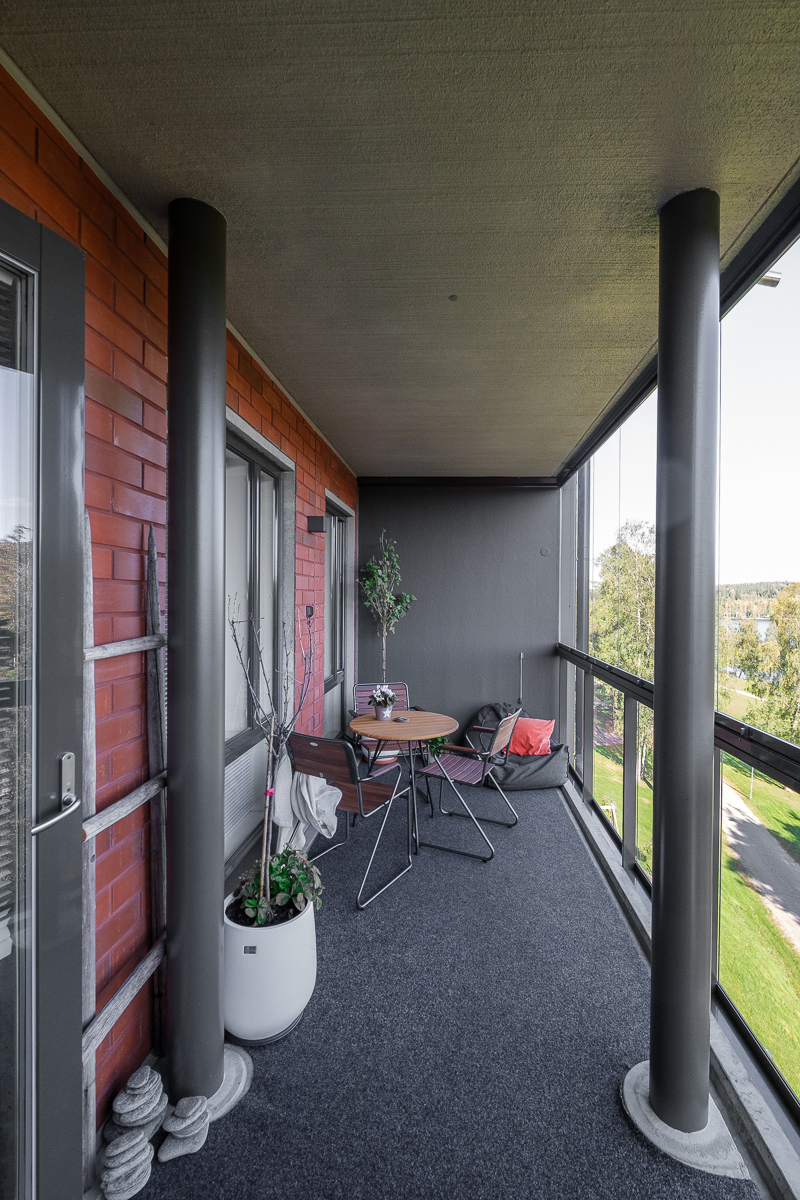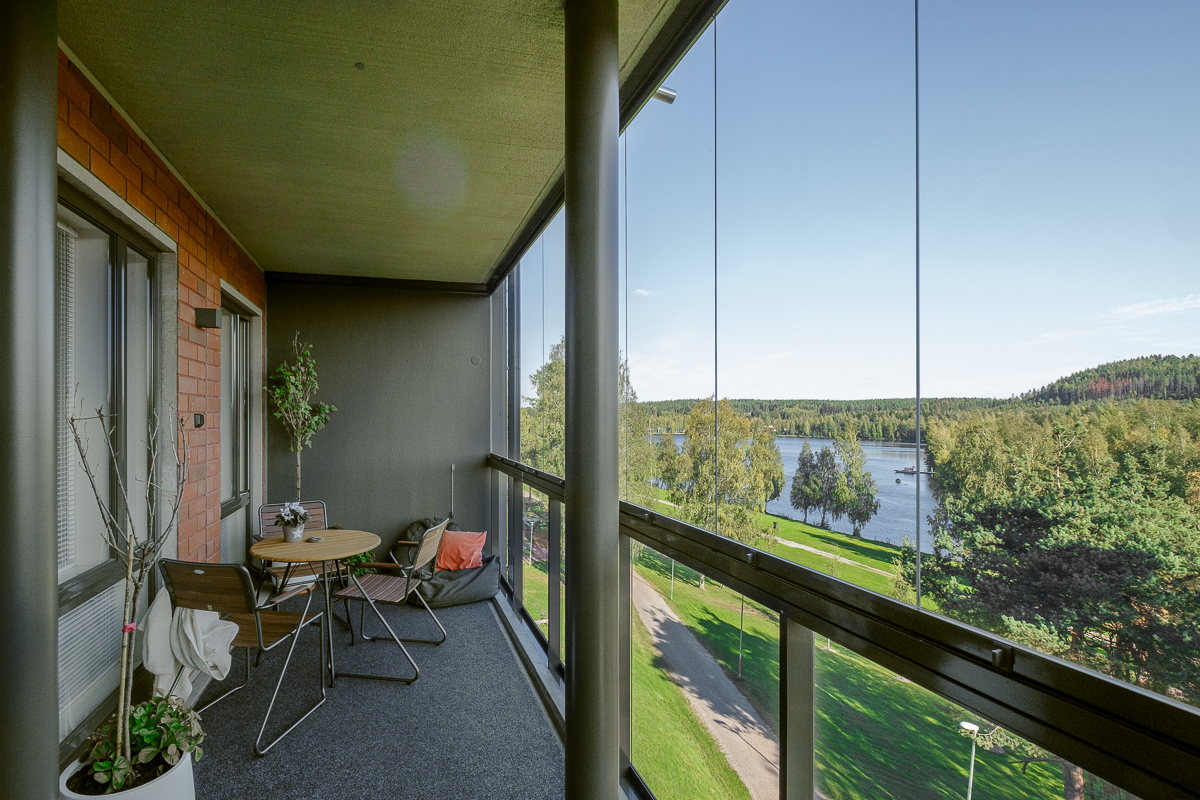 Hurmaava ja valoisa kaksio, jossa tilat on käytetty tehokkaasti, hukka tilaa ei juurikaan ole. Lasitetulta isolta parvekkeelta lähes puiden latvakorkeudelta, voit ihastella kaunista näköalaa Äänejärvelle ja Äänemäkeen. Keskustan palvelut vieressä ja uudehkon talon nykyaikaiset ratkaisut antavat asumisen mukavuutta ja helppoutta. Tähän asuntoon on helppo ihastua.