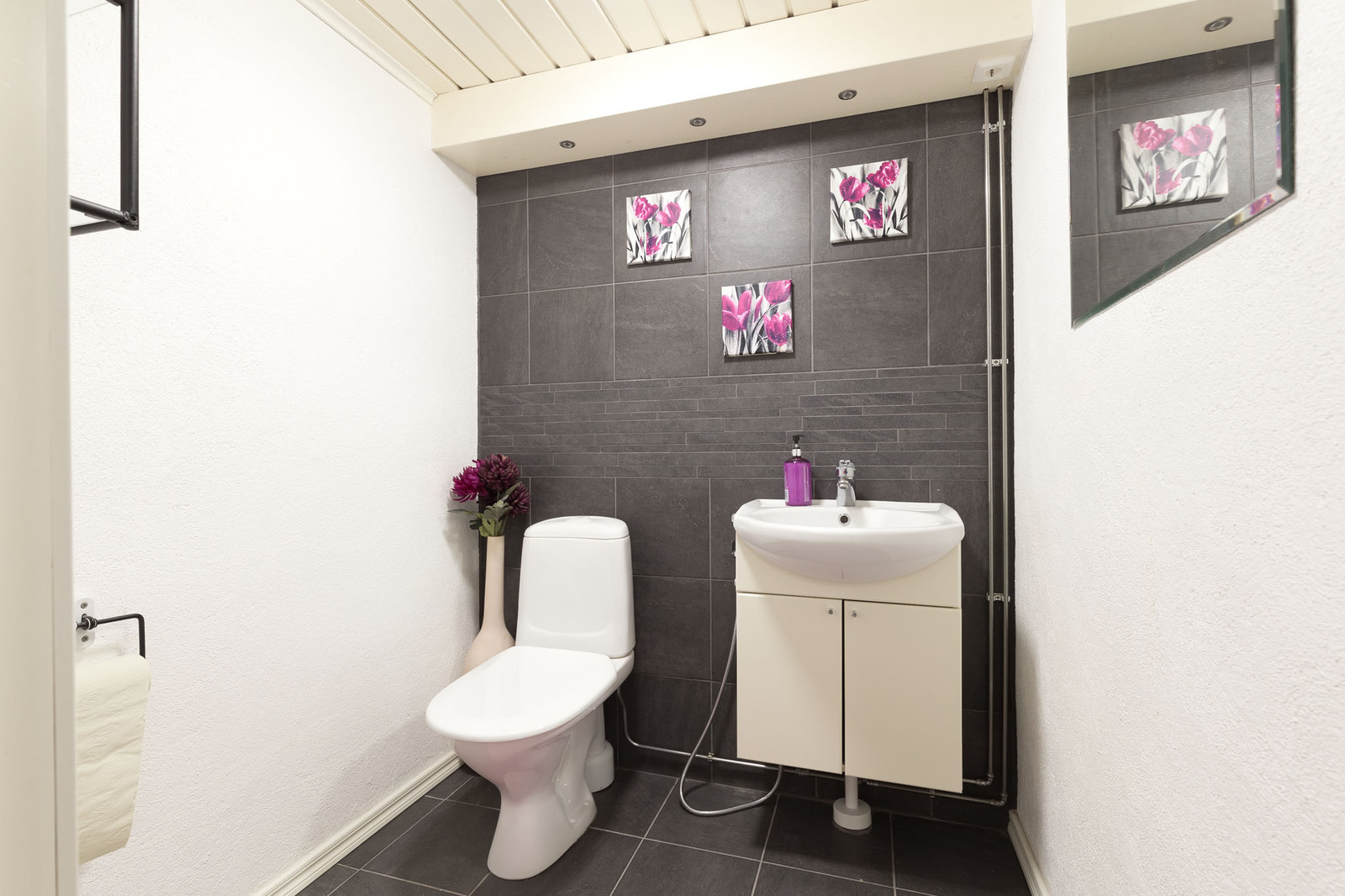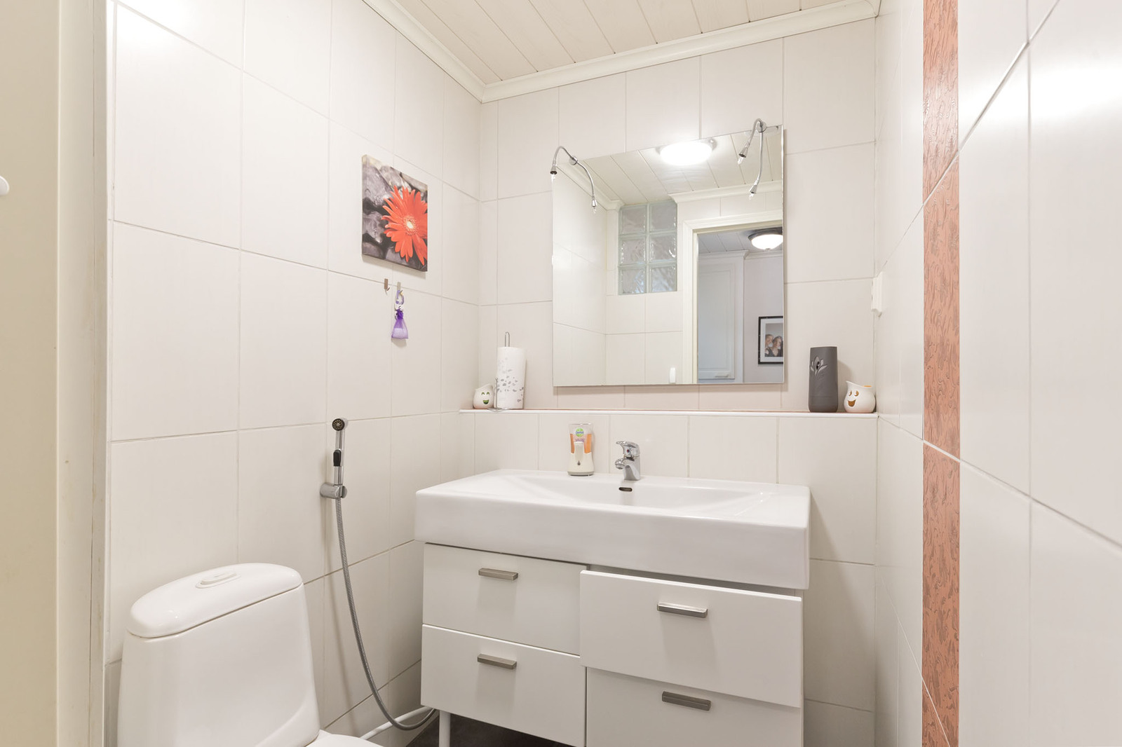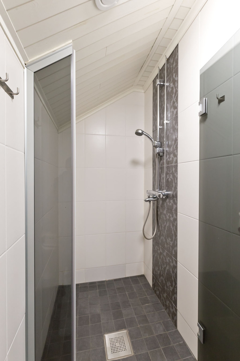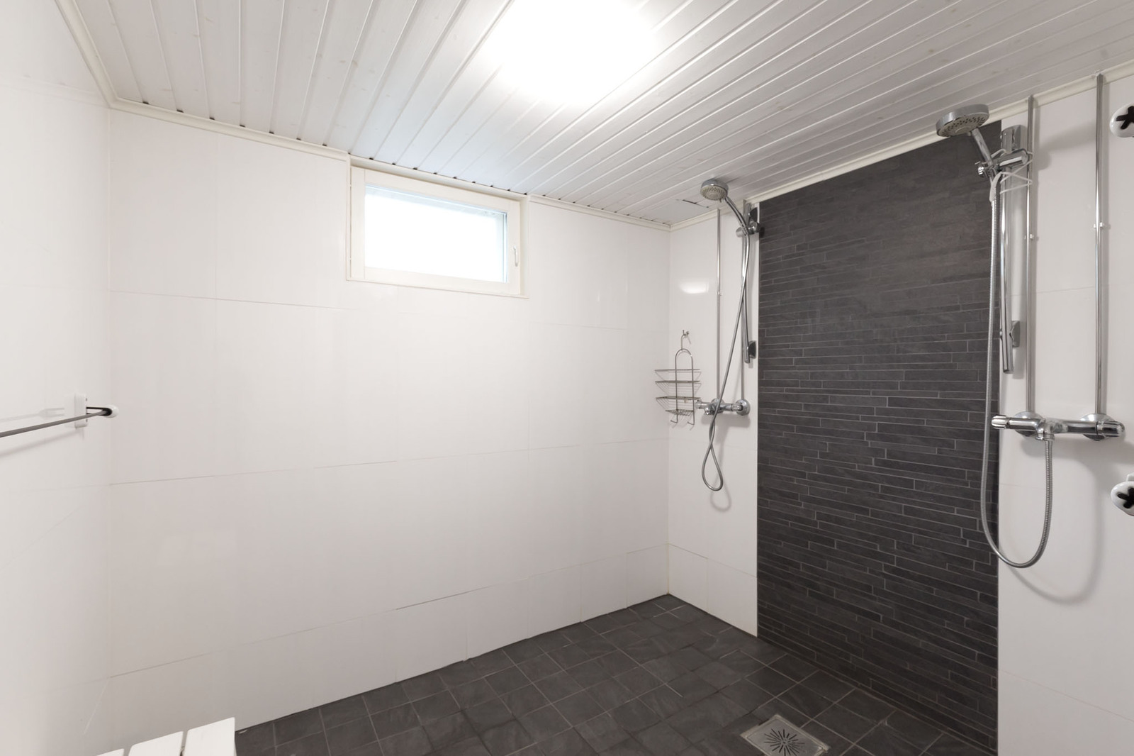 | Kylpyhuoneen kuvaus | Lattialämmitys, suihku ja kiinteät valaisimet, seinät (kaakeli), lattiat (laatta) |