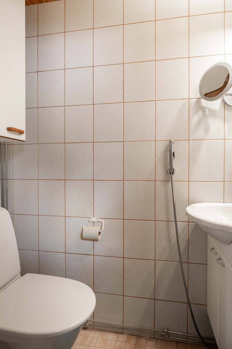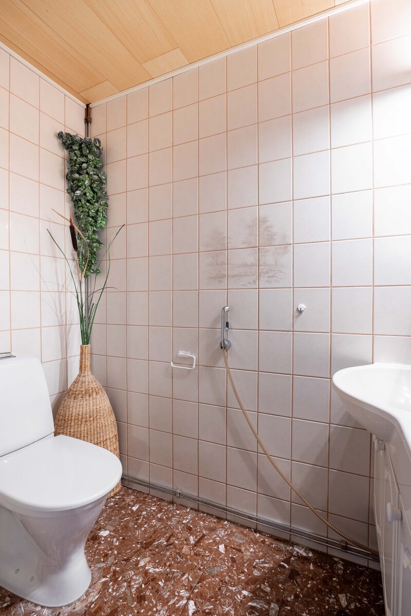 | Kylpyhuoneen kuvaus | Suihkuseinä, suihku ja lattialämmitys, seinät (kaakeli), lattiat (laatta) |