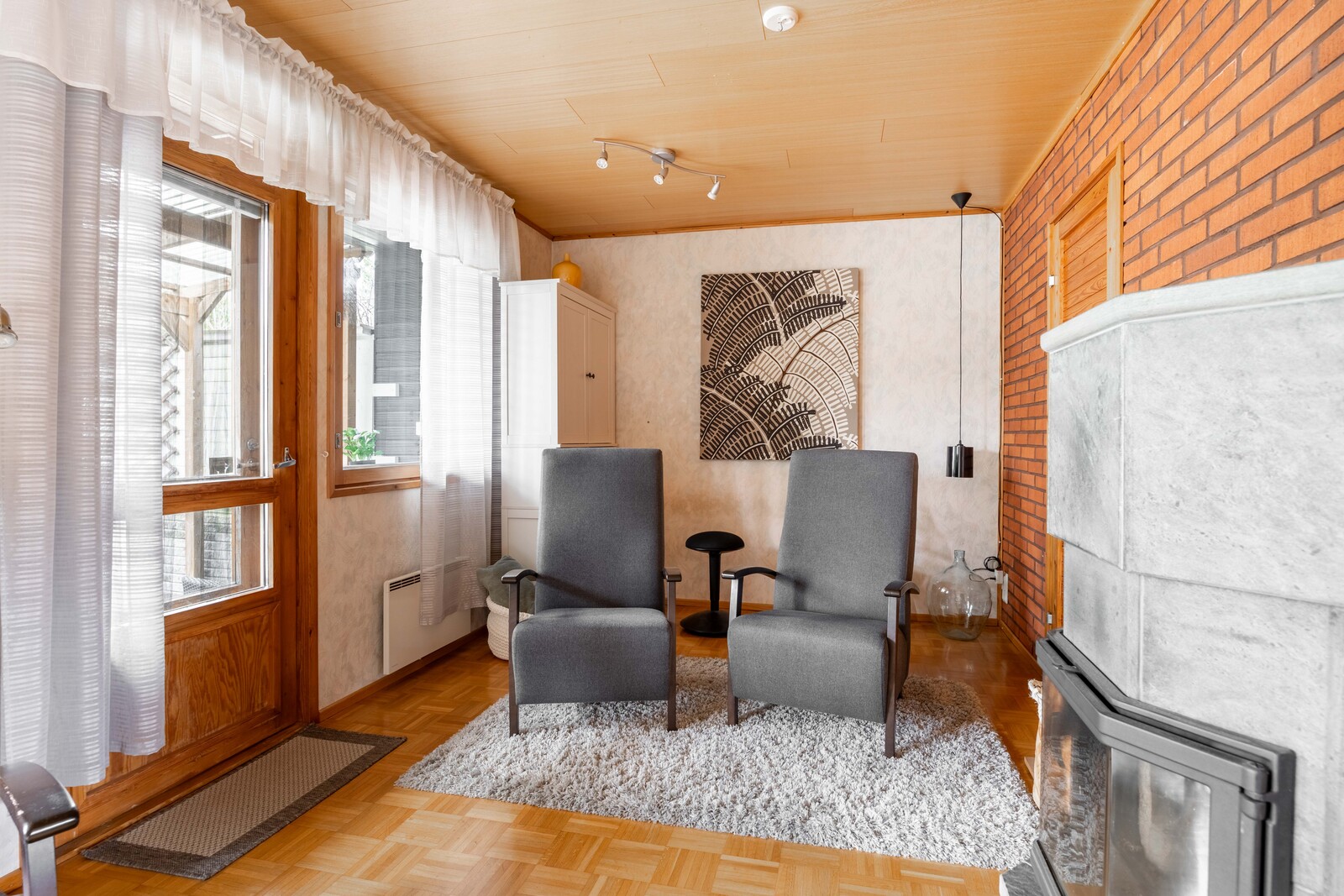 | Olohuoneen kuvaus | Seinät (tapetti), lattiat (parketti) |