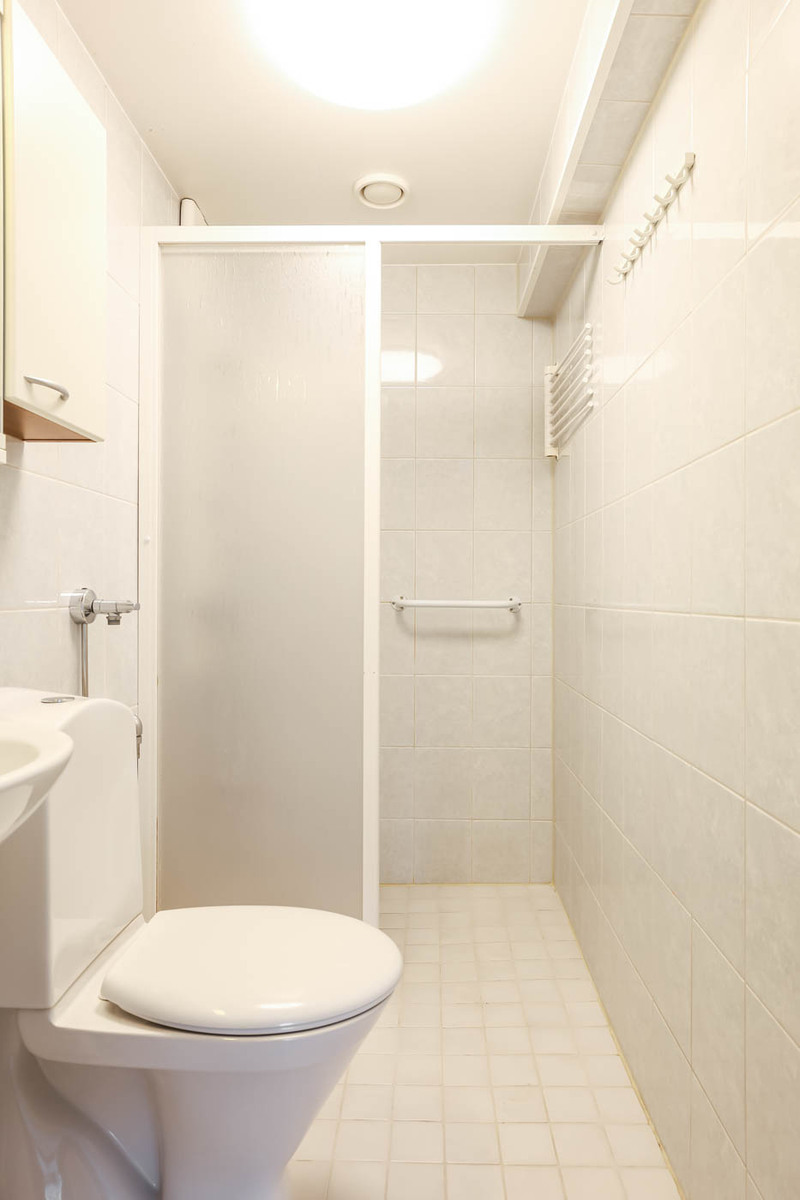 | Kylpyhuoneen kuvaus | Pesukoneliitäntä, suihkuseinä, lattialämmitys ja peilikaappi, seinät (kaakeli), lattiat (laatta) |