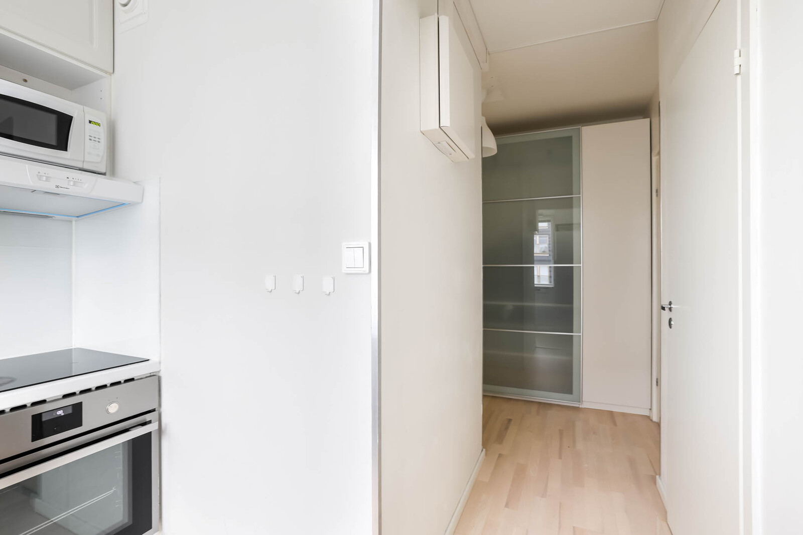 | Keittiön kuvaus | Liesi (Keraaminen liesi), työtasot (laminaatti), seinät (maali), lattiat (parketti), jääkaappipakastin, astianpesukone ja liesituuletin |