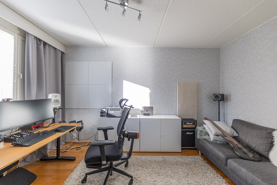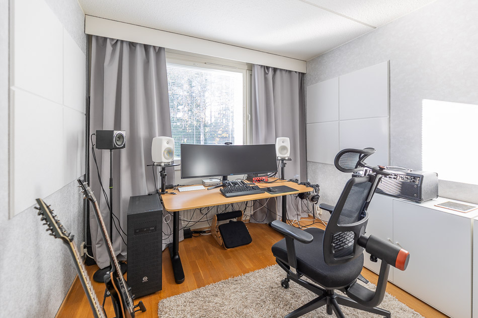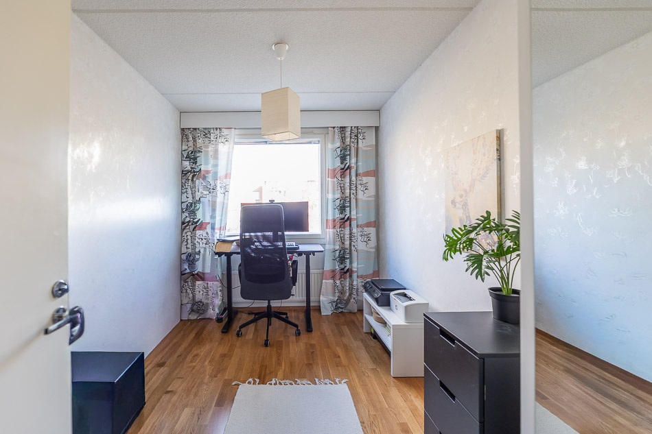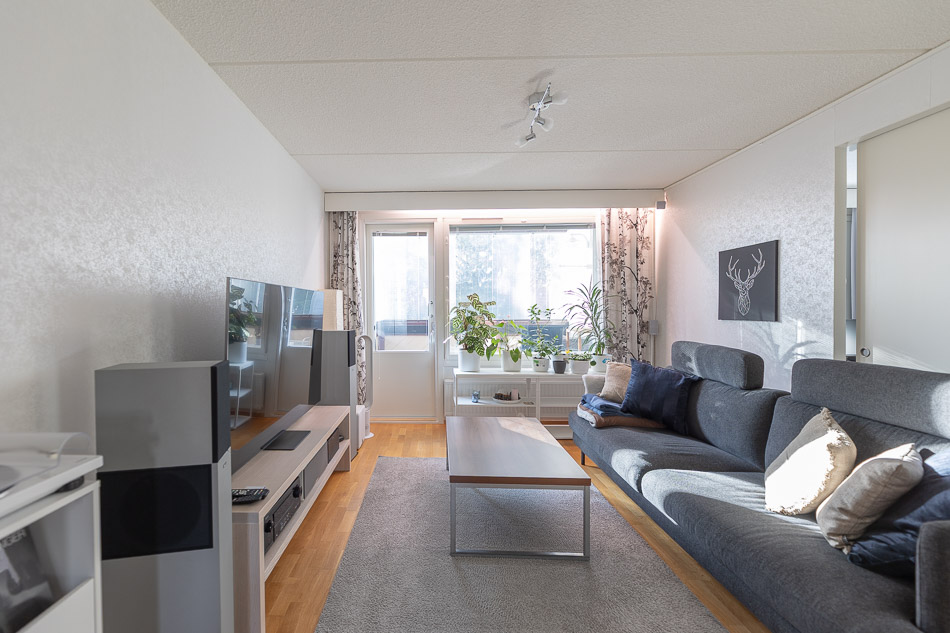 Asunto on hyväkuntoinen ja sen 92,5 neliötä jakautuvat käytännöllisesti neljään huoneeseen, keittiöön, vaatehuoneeseen ja saunaan. Keittiö on remontoitu vuonna 2009 ja kylpyhuone sekä sauna ovat saaneet uudet pinnat ja kalusteet viime vuosina. Asunnon parkettilattiat ja tapetoidut seinät luovat kodikkaan tunnelman.