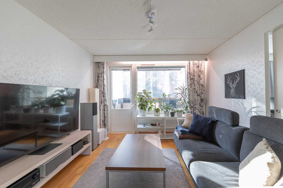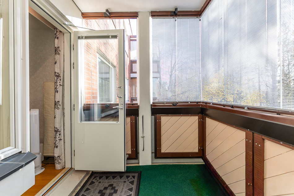 | Olohuoneen kuvaus | Seinät (tapetti), lattiat (parketti), Olohuoneesta on käynti lasitetulle parvekkeelle, josta avautuu kaunis puustoinen näkymä. Parveke on lännen suuntaan, joten ilta-auringosta pääsee nauttimaan vaikka joka ilta. |