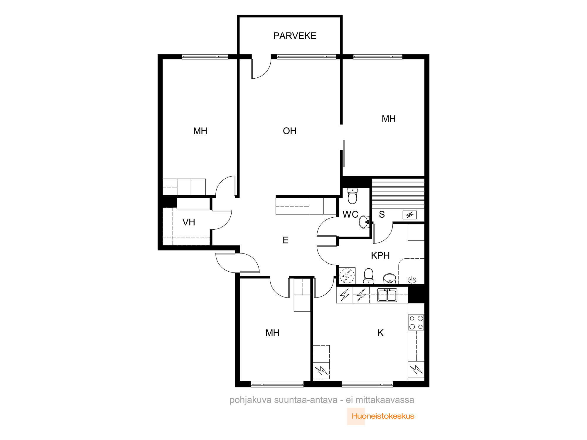| Huoneistoselitelmä | 4h + k + vh + s + parv (lasitettu) + ak |