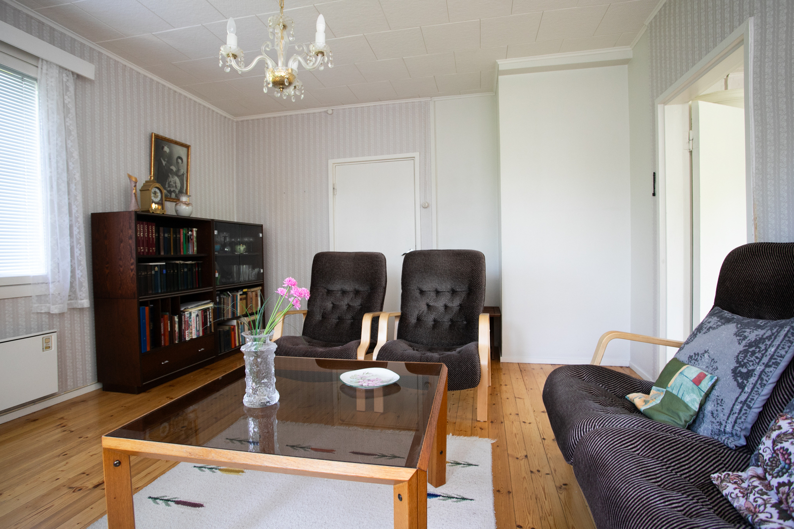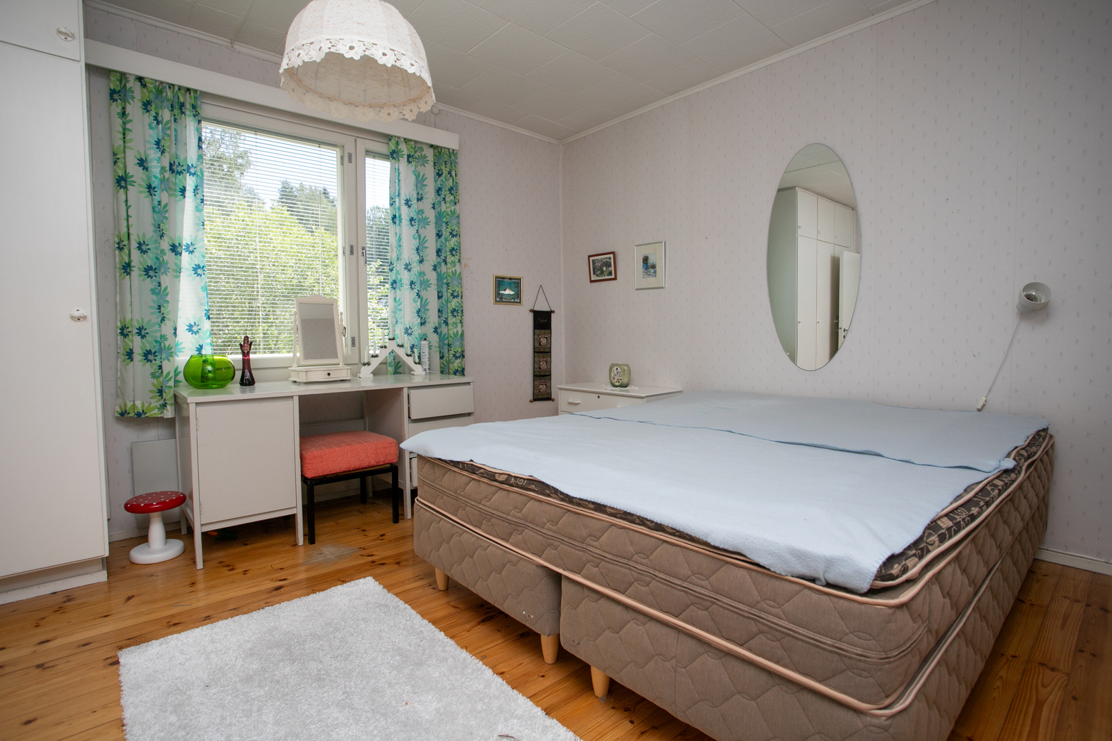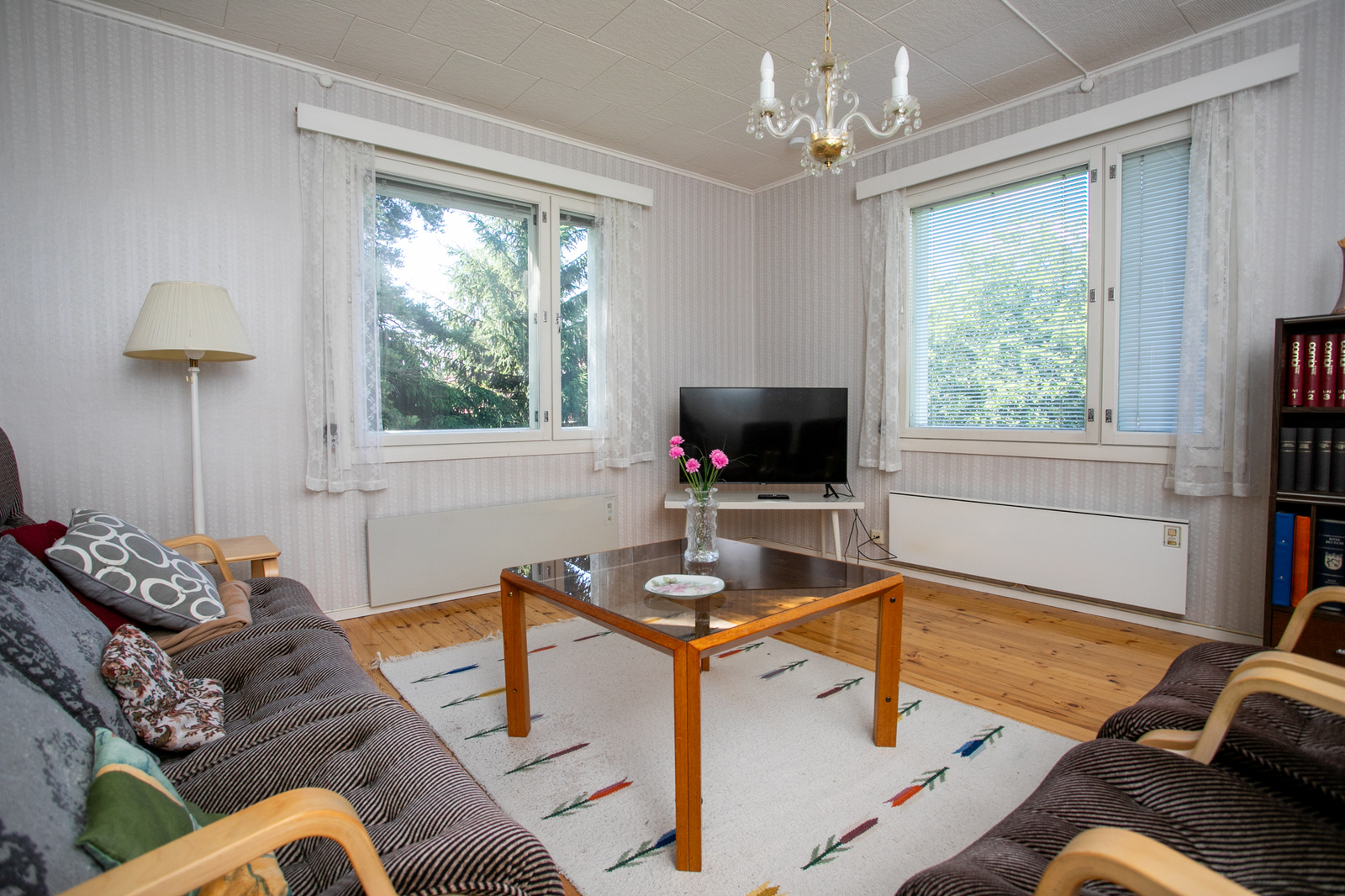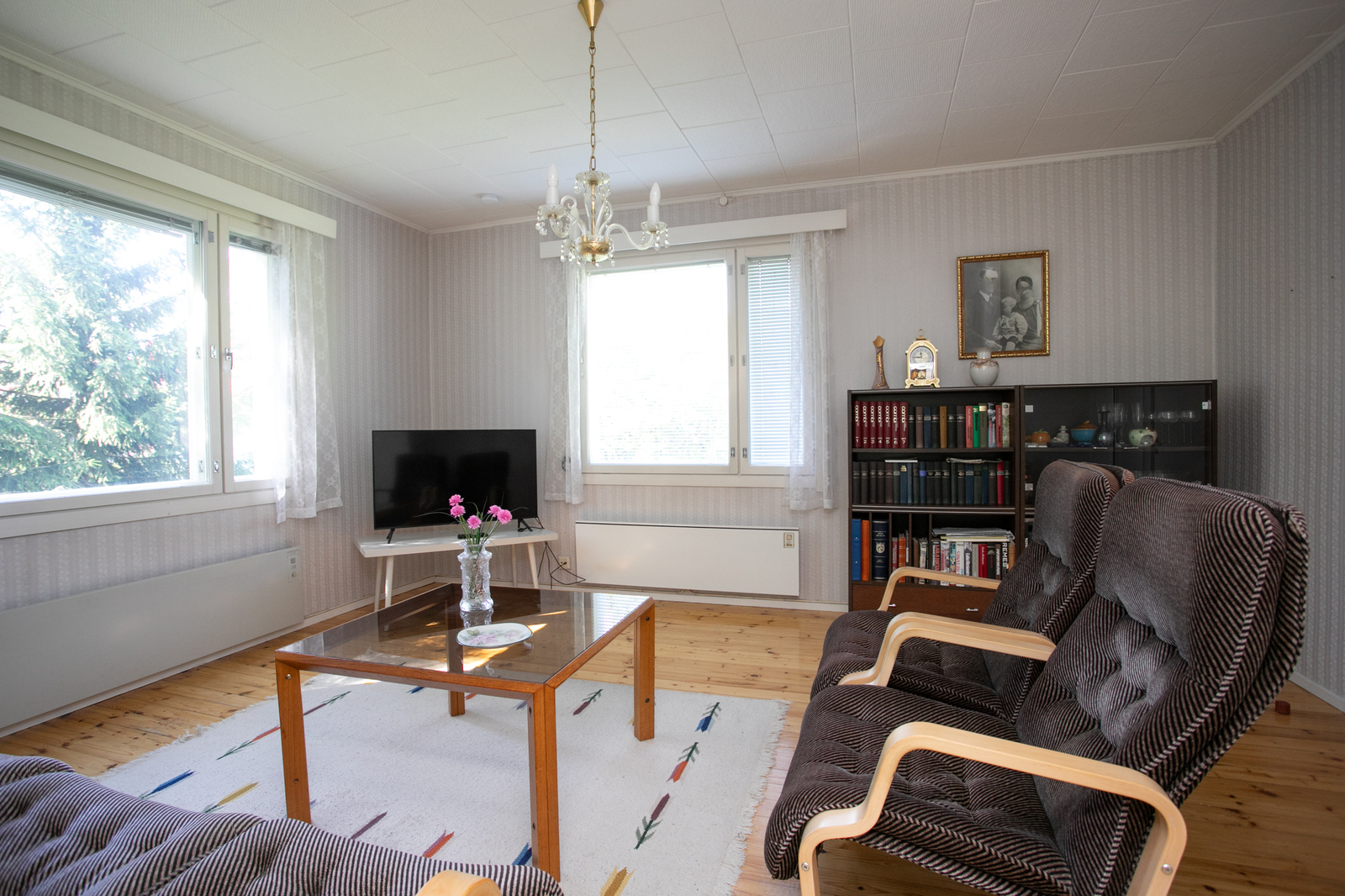 Lämminhenkinen, 1950 -luvulla valmistunut, perinteinen rintamamiestalo omalla, isolla 1 264 m2:n tontilla, jossa on rakennusoikeutta yhteensä 632 m2. Rakennuksen tilat ovat kahdessa tasossa, yläkerrassa on myös vesipiste, viemäri ja keittiö.