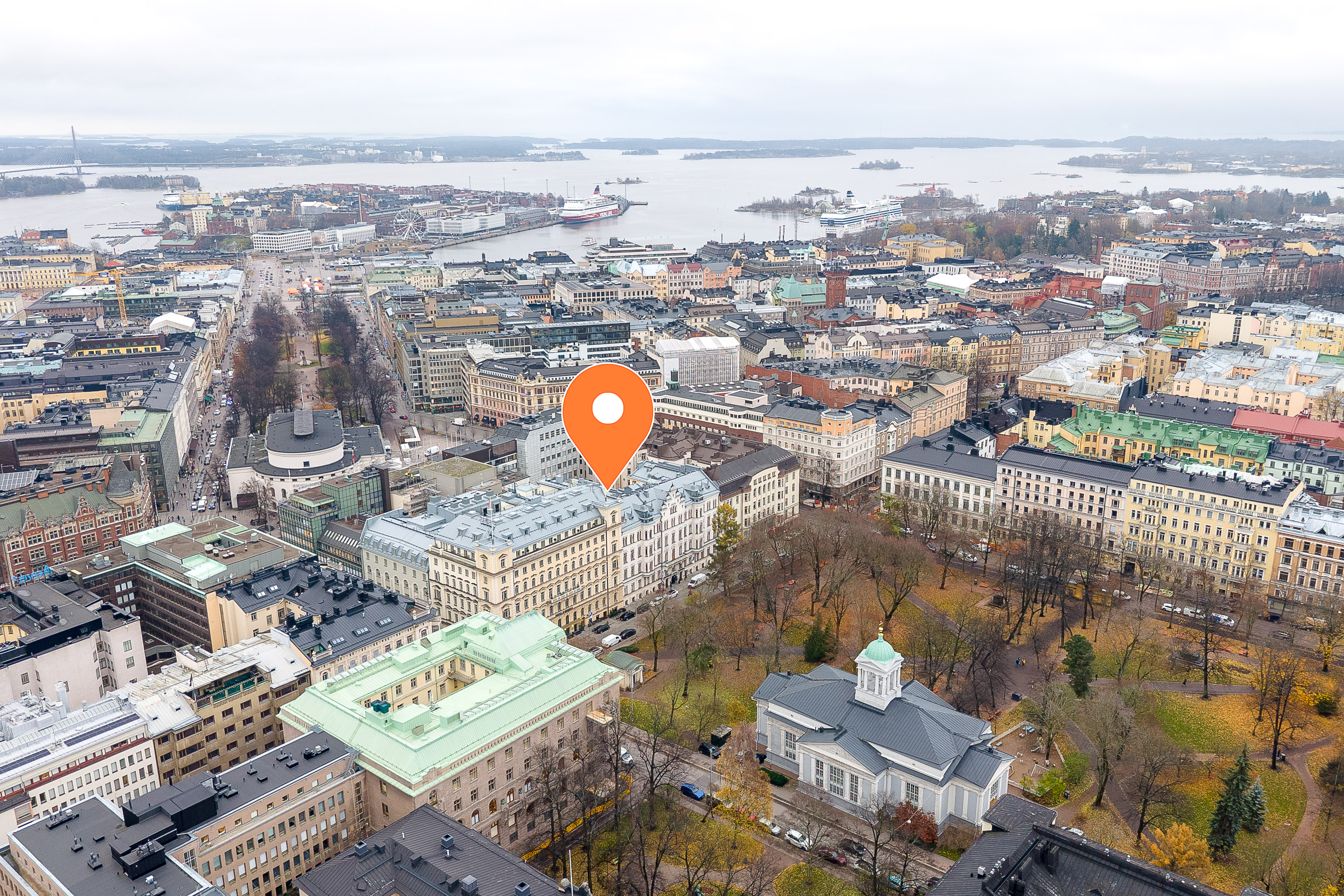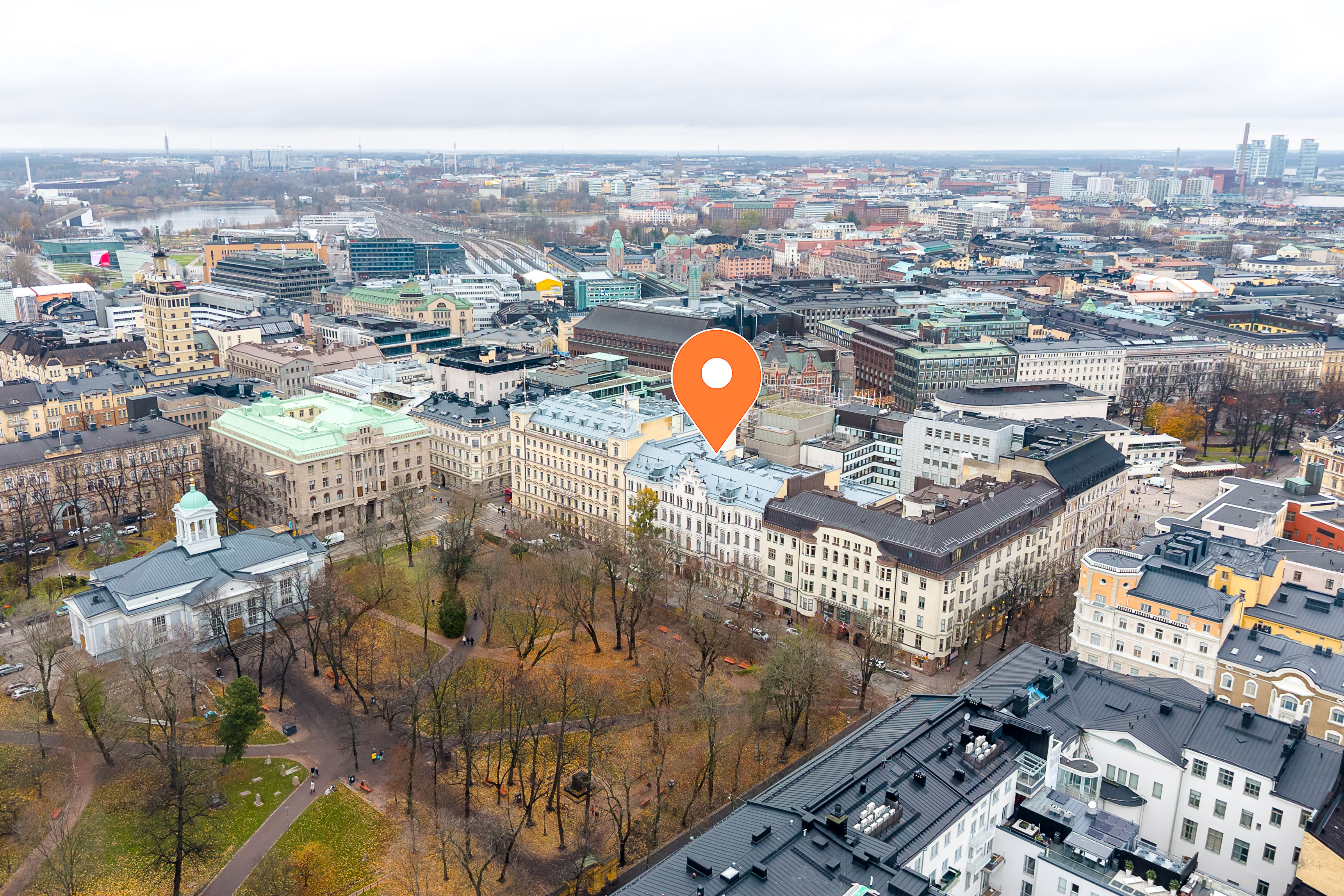 Sijainti on yksi Helsingin arvostetuimmista. Ikoniset rakennukset, ravintolat, galleriat ja keskustan palvelut avautuvat lähes kotiovelta. Keskustan puistot tuovat ympäristöön luonnonläheisyyttä ympäri vuoden, ja alueen tunnelma on ainutlaatuinen – urbaani, mutta rauhallinen.